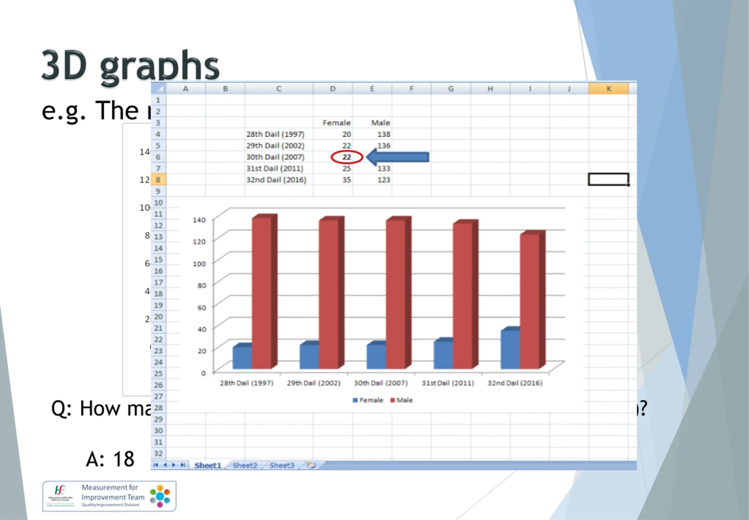 e.g. The number of Female and Male TDs Q: How many Female TDs were elected to the 30th Dail (2007)? A: 18 B: 19 C: 20 D: 22