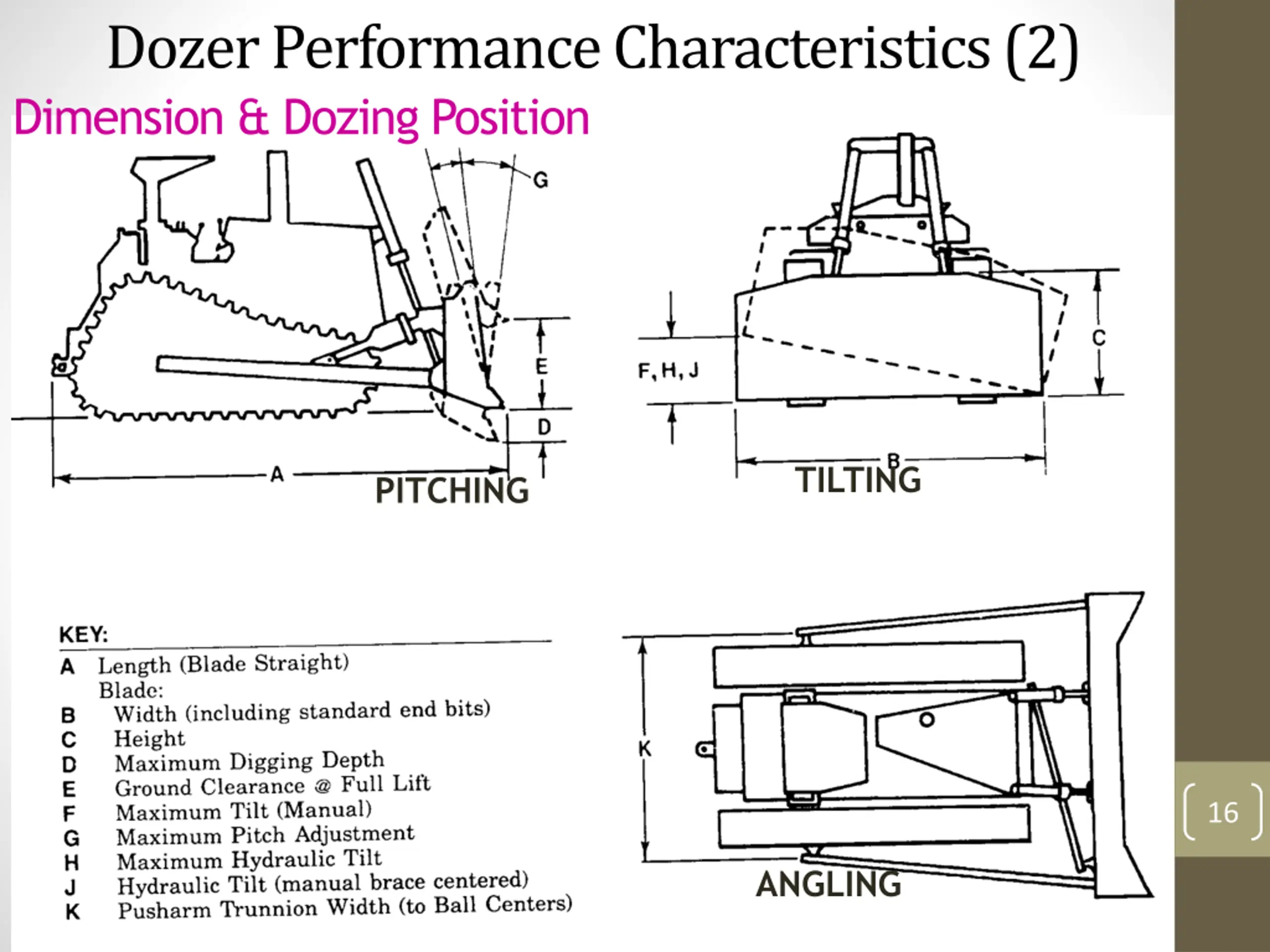 Dozer Performance Characteristics (2) Dimension & Dozing Position TILTING PITCHING 16 ANGLING