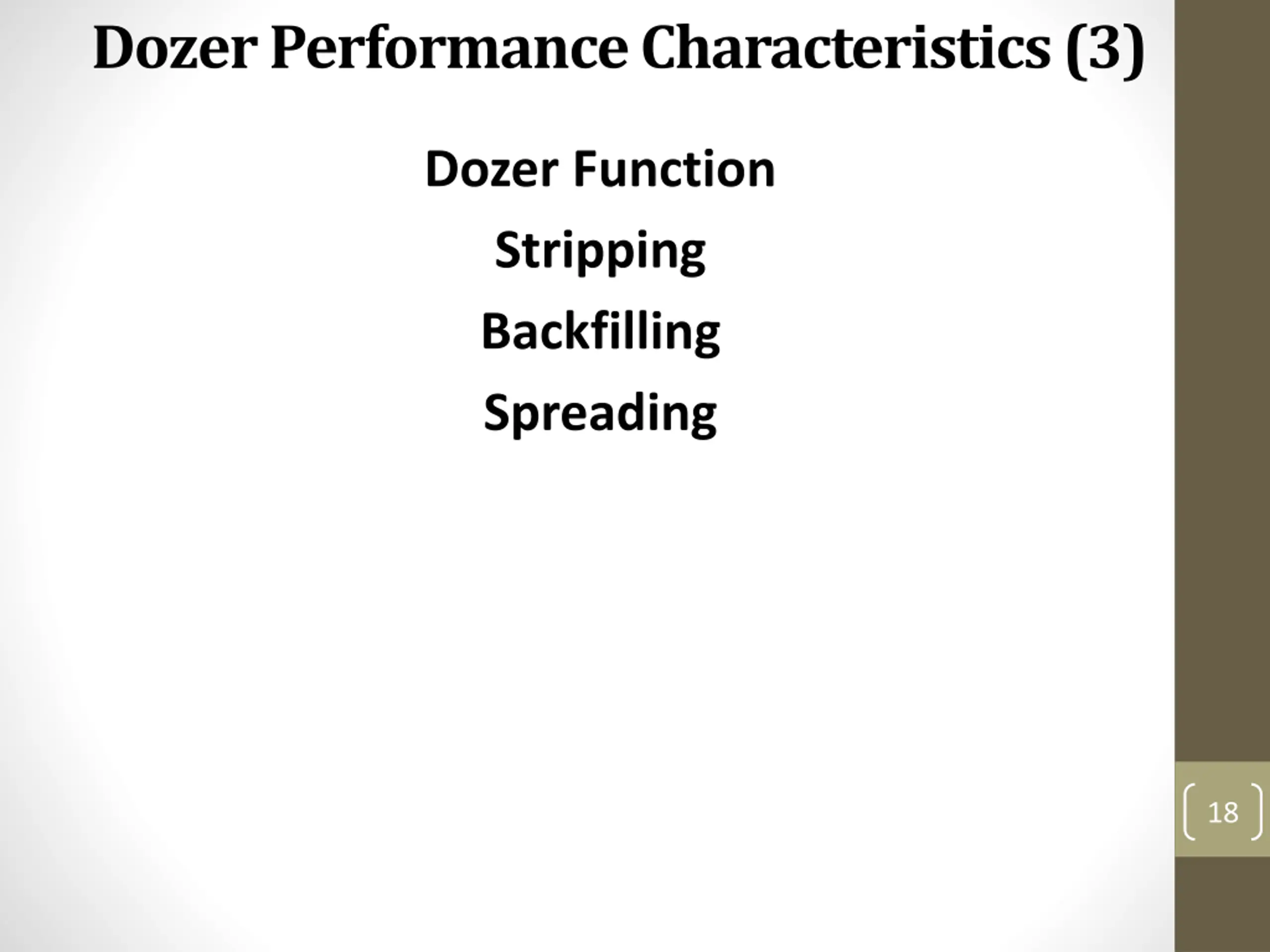Dozer Performance Characteristics (3) Dozer Function Stripping Backfilling Spreading 18