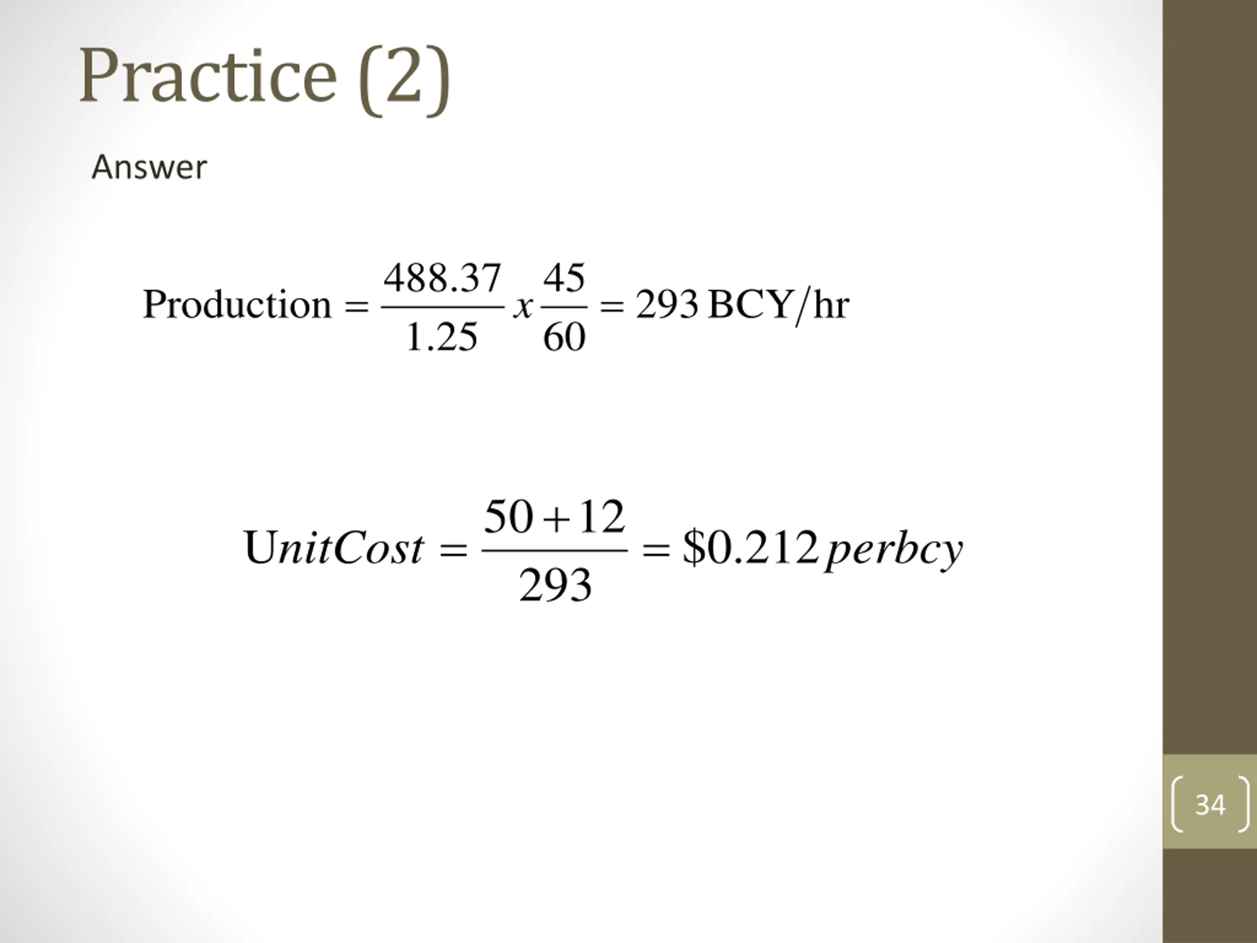 Practice (2) Answer 488.37 45 = = Production BCY 93 2 hr x 1.25 60 12 + 50 = = nitCost U . 0 $ 212 perbcy 293 34
