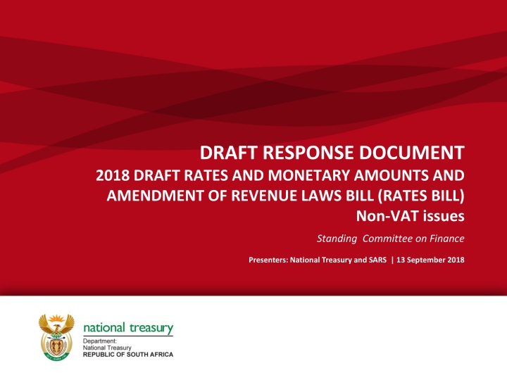 DRAFT RESPONSE DOCUMENT 2018 DRAFT RATES AND MONETARY AMOUNTS AND AMENDMENT OF REVENUE LAWS BILL (RATES BILL) Non-VAT issues Standing Committee on Finance Presenters: National Treasury and SARS | 13 September 2018