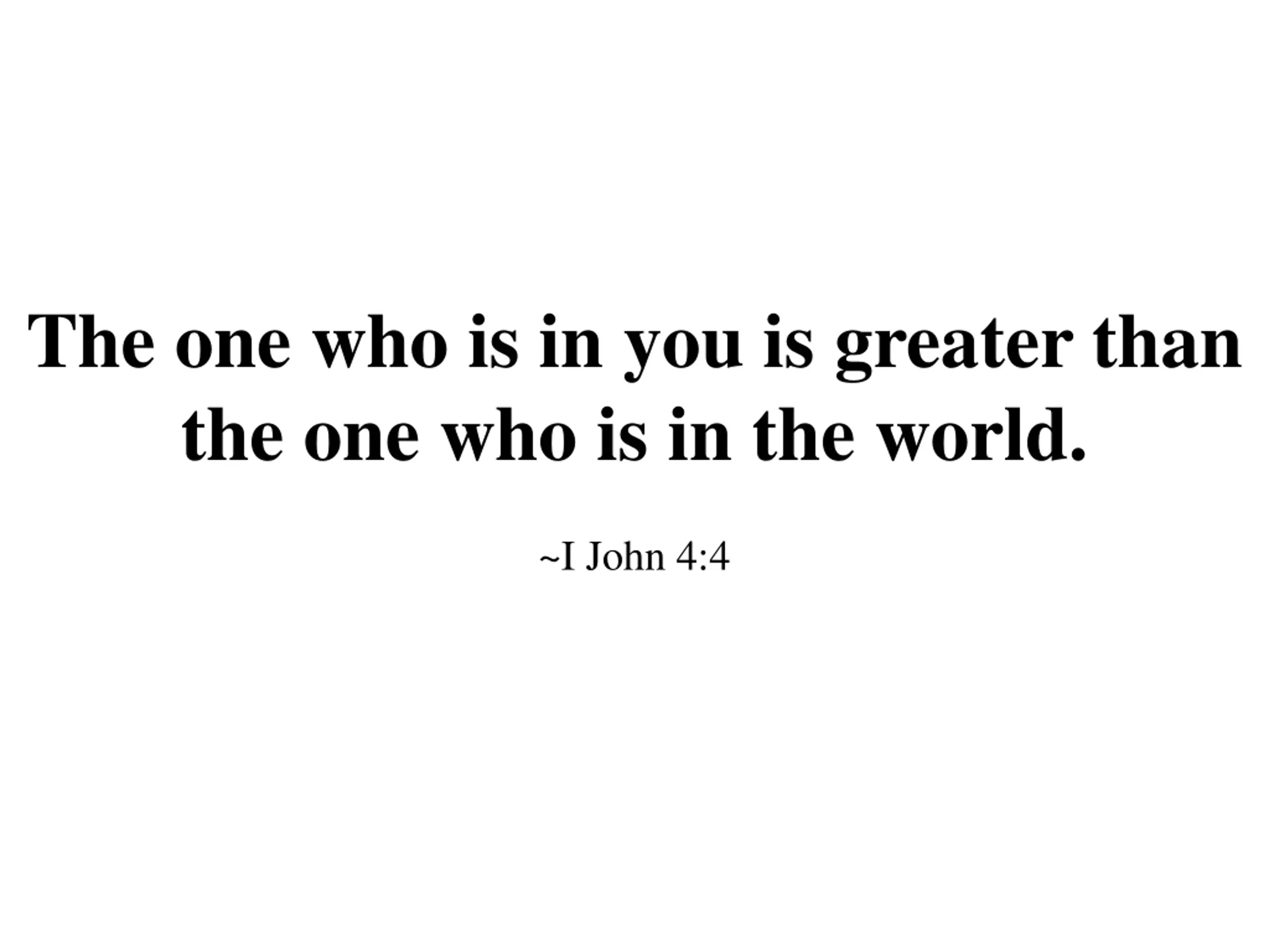 The one who is in you is greater than the one who is in the world. ~I John 4:4