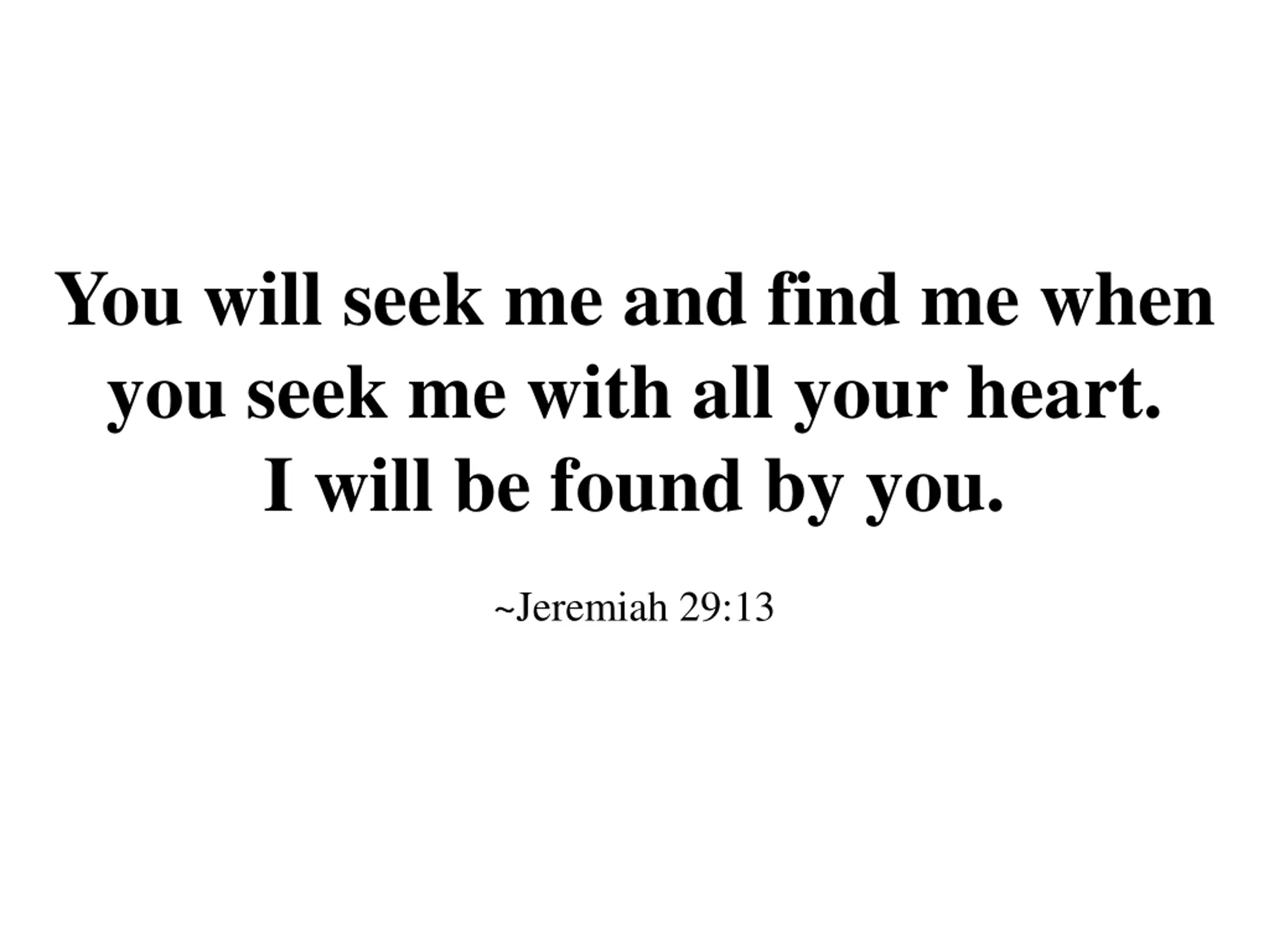 You will seek me and find me when you seek me with all your heart. I will be found by you. ~Jeremiah 29:13