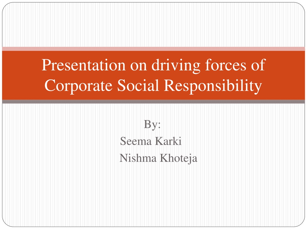 Presentation on driving forces of Corporate Social Responsibility By: Seema Karki Nishma Khoteja