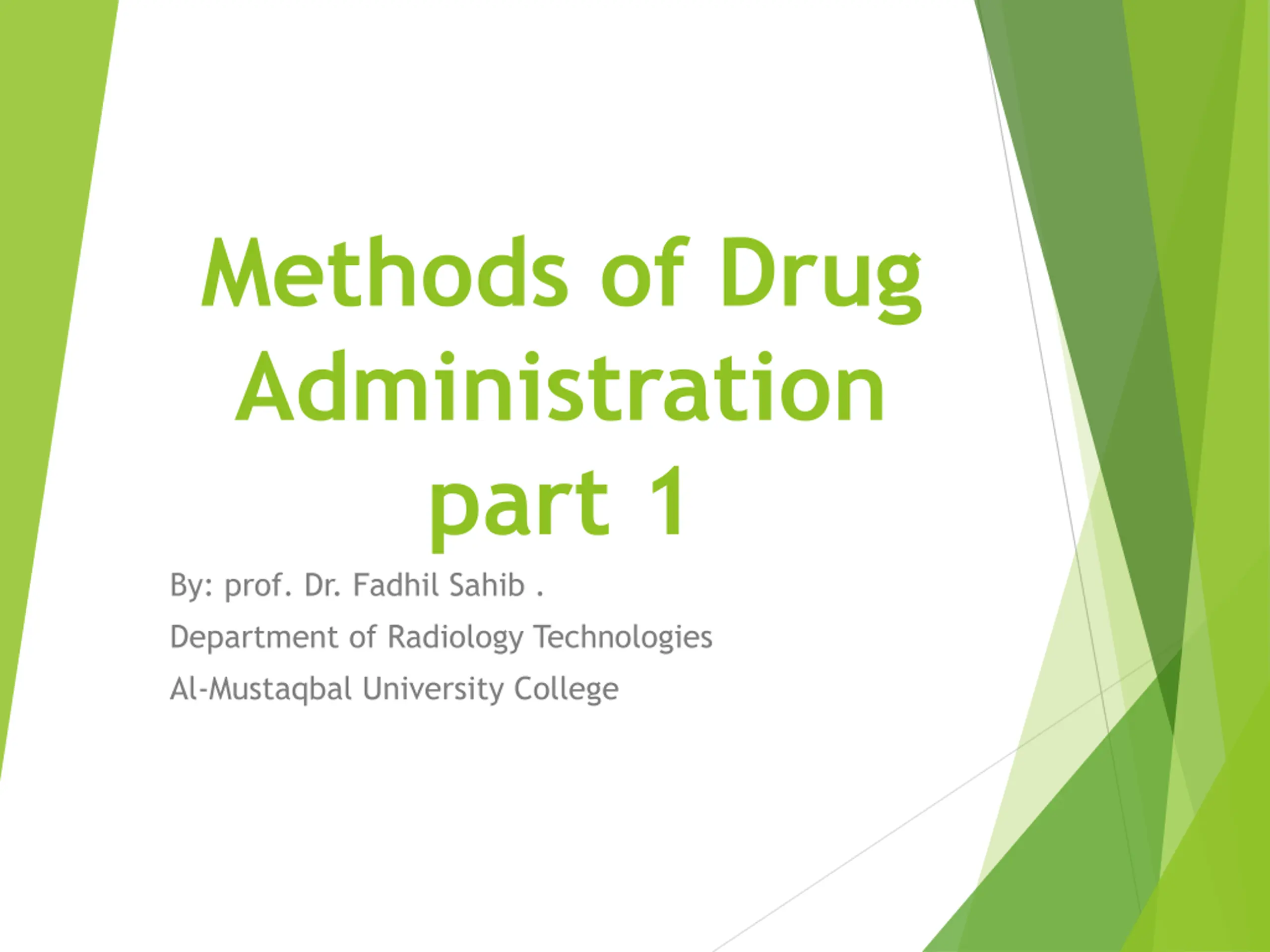 Methods of Drug Administration part 1 By: prof. Dr. Fadhil Sahib . Department of Radiology Technologies Al-Mustaqbal University College