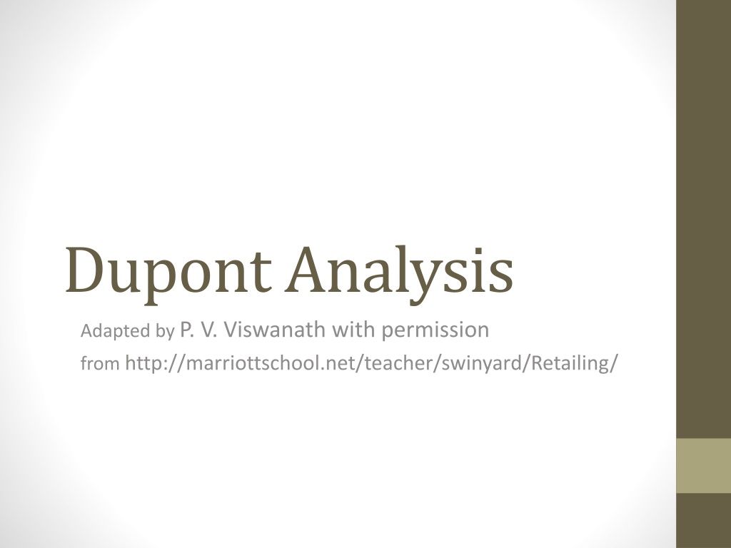 Dupont Analysis Adapted by P. V. Viswanath with permission from http://marriottschool.net/teacher/swinyard/Retailing/