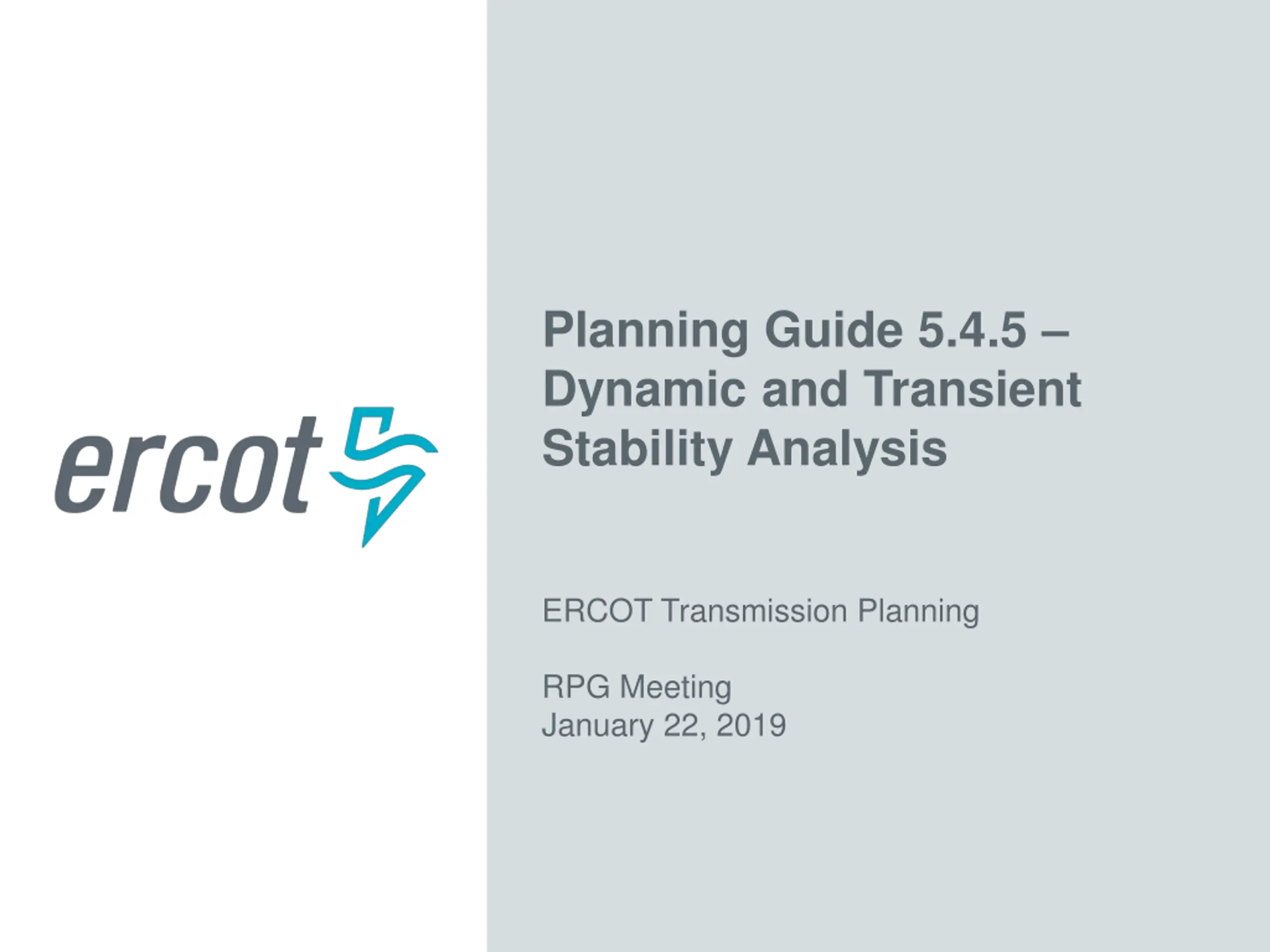 Planning Guide 5.4.5 Dynamic and Transient Stability Analysis ERCOT Transmission Planning RPG Meeting January 22, 2019