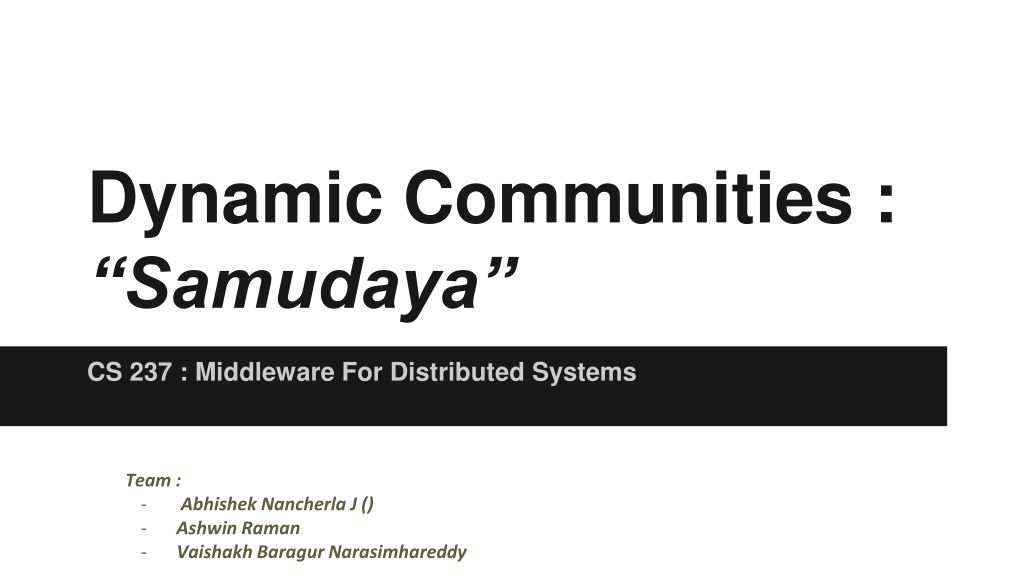 Dynamic Communities : Samudaya CS 237 : Middleware For Distributed Systems Team : - - - Abhishek Nancherla J () Ashwin Raman Vaishakh Baragur Narasimhareddy