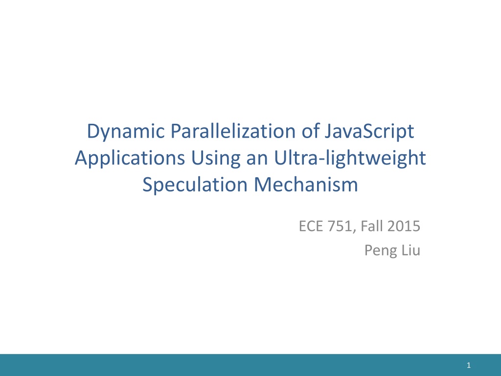 Dynamic Parallelization of JavaScript Applications Using an Ultra-lightweight Speculation Mechanism ECE 751, Fall 2015 Peng Liu 1