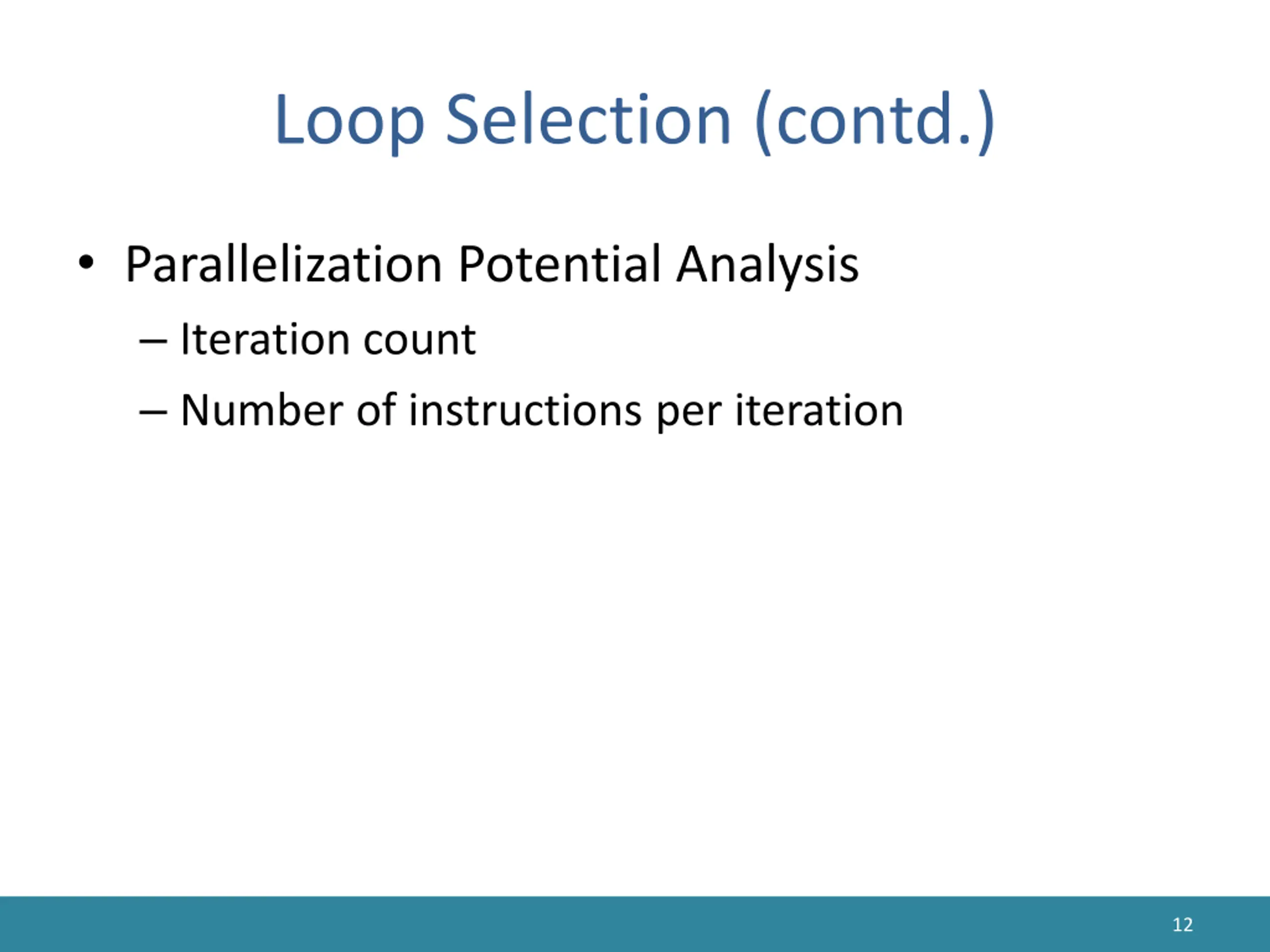 Loop Selection (contd.) Parallelization Potential Analysis Iteration count Number of instructions per iteration 12