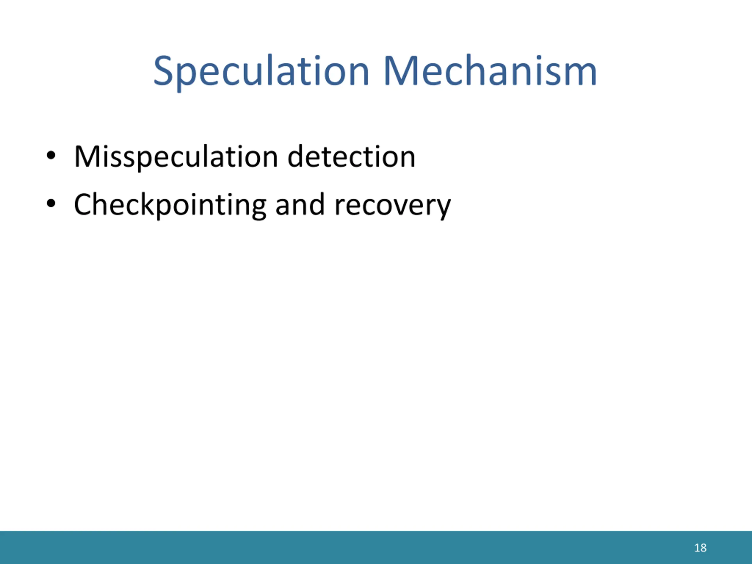Speculation Mechanism Misspeculation detection Checkpointing and recovery 18