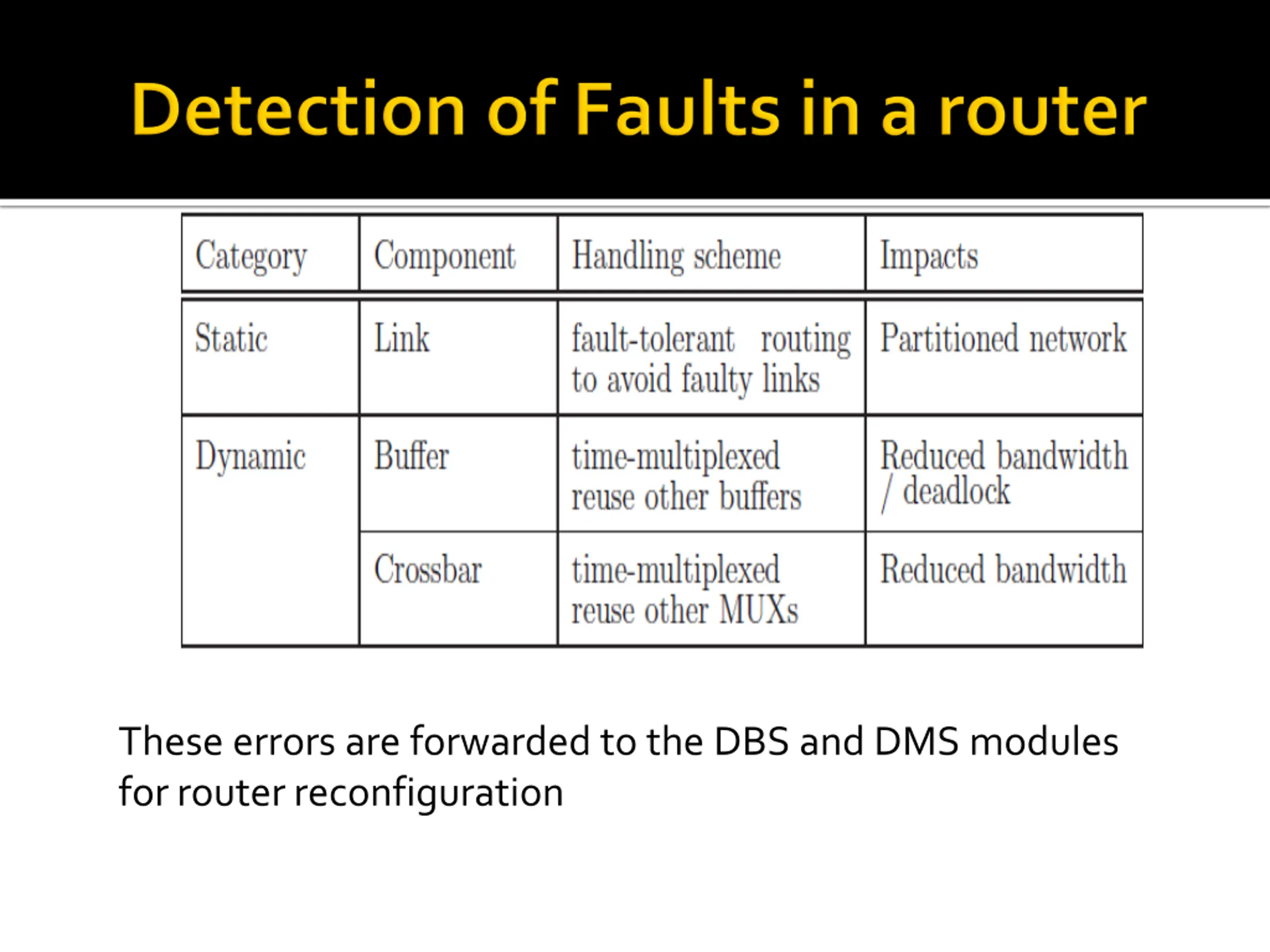 These errors are forwarded to the DBS and DMS modules for router reconfiguration