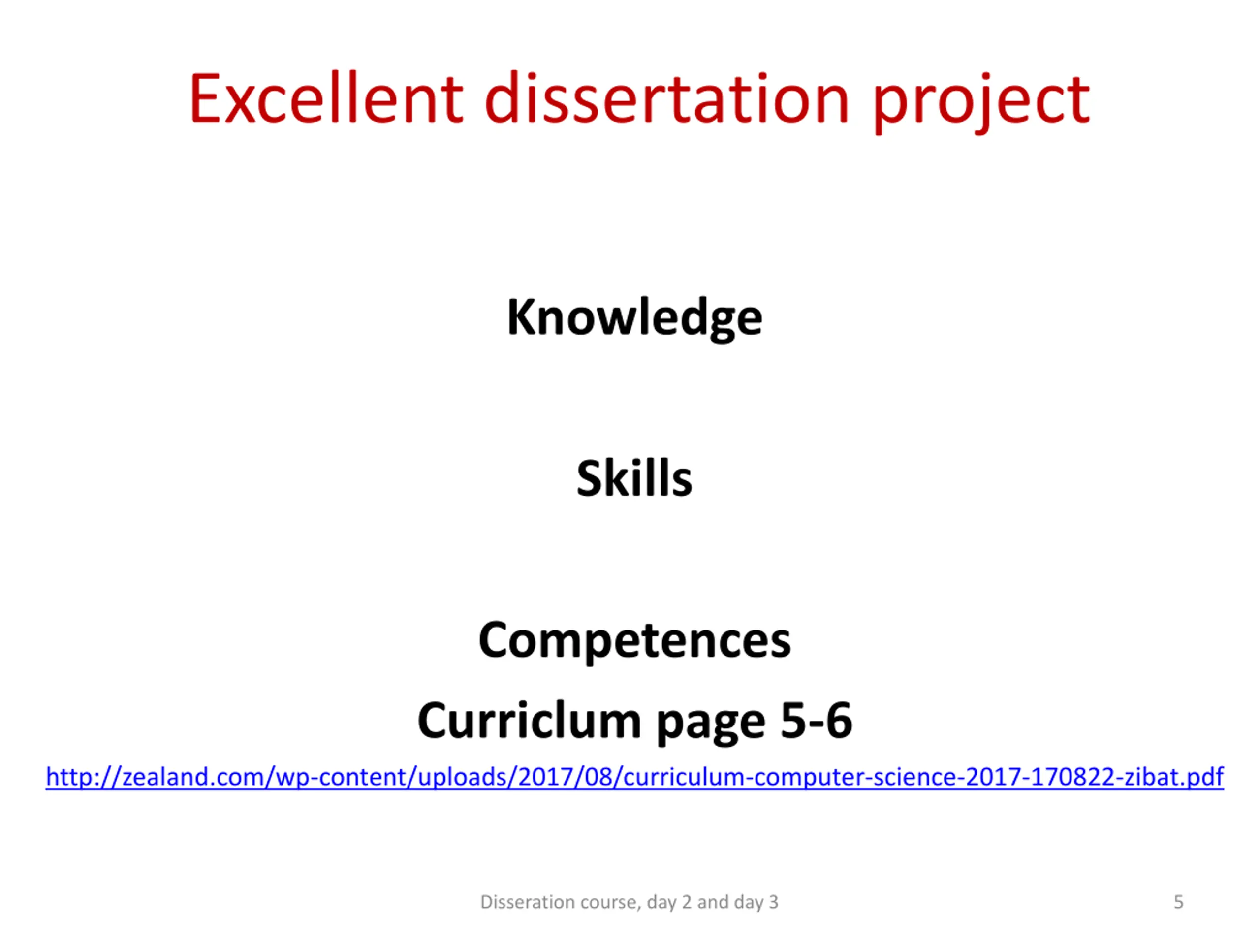 Excellent dissertation project Knowledge Skills Competences Curriclum page 5-6 http://zealand.com/wp-content/uploads/2017/08/curriculum-computer-science-2017-170822-zibat.pdf Disseration course, day 2 and day 3 5