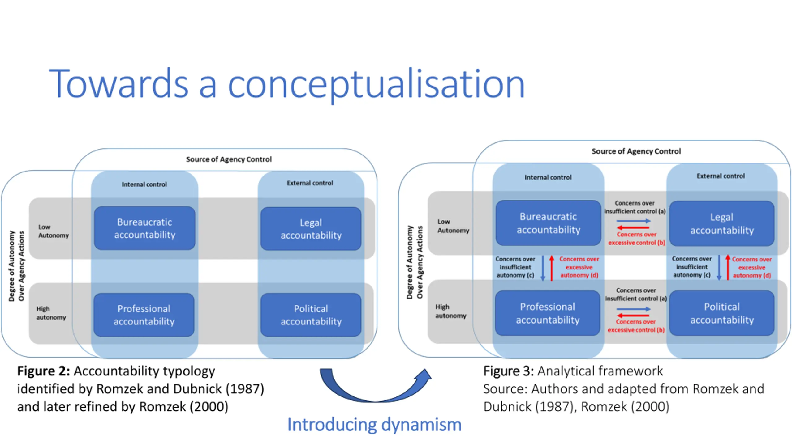 Towards a conceptualisation Figure 2: Accountability typology identified by Romzek and Dubnick (1987) and later refined by Romzek (2000) Figure 3: Figure 3: Analytical framework Source: Authors and adapted from Romzek and Dubnick (1987), Romzek (2000) Introducing dynamism Introducing dynamism