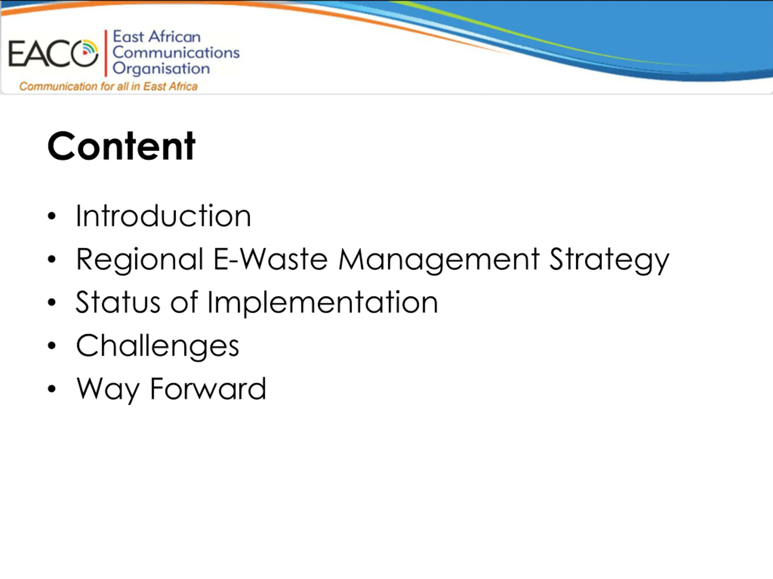 Content Introduction Regional E-Waste Management Strategy Status of Implementation Challenges Way Forward