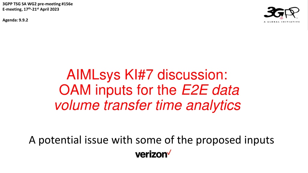 3GPP TSG SA WG2 pre-meeting #156e E-meeting, 17th-21st April 2023 Agenda: 9.9.2 AIMLsys KI#7 discussion: OAM inputs for the E2E data volume transfer time analytics A potential issue with some of the proposed inputs