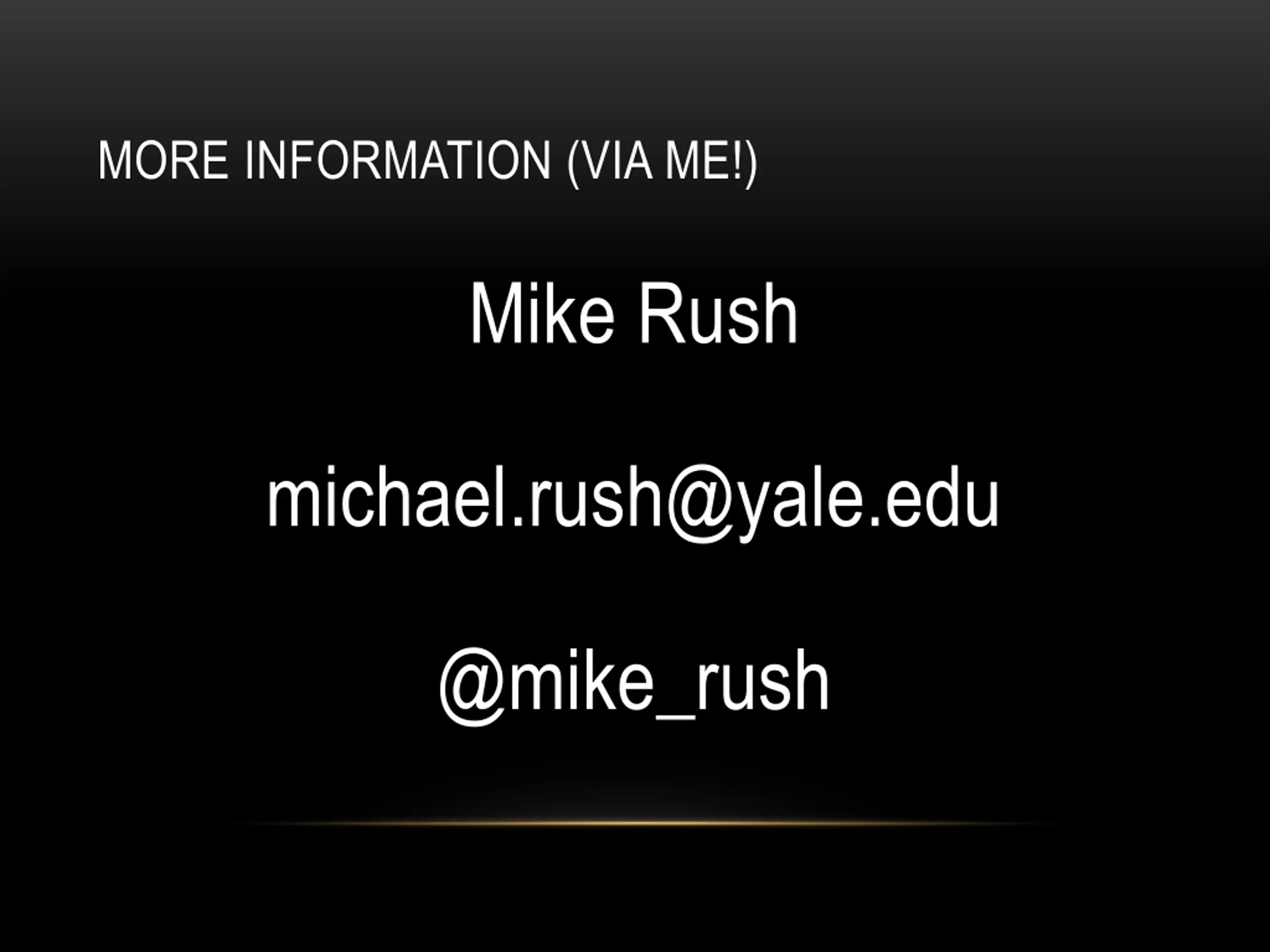 MORE INFORMATION (VIA ME!) Mike Rush michael.rush@yale.edu @mike_rush