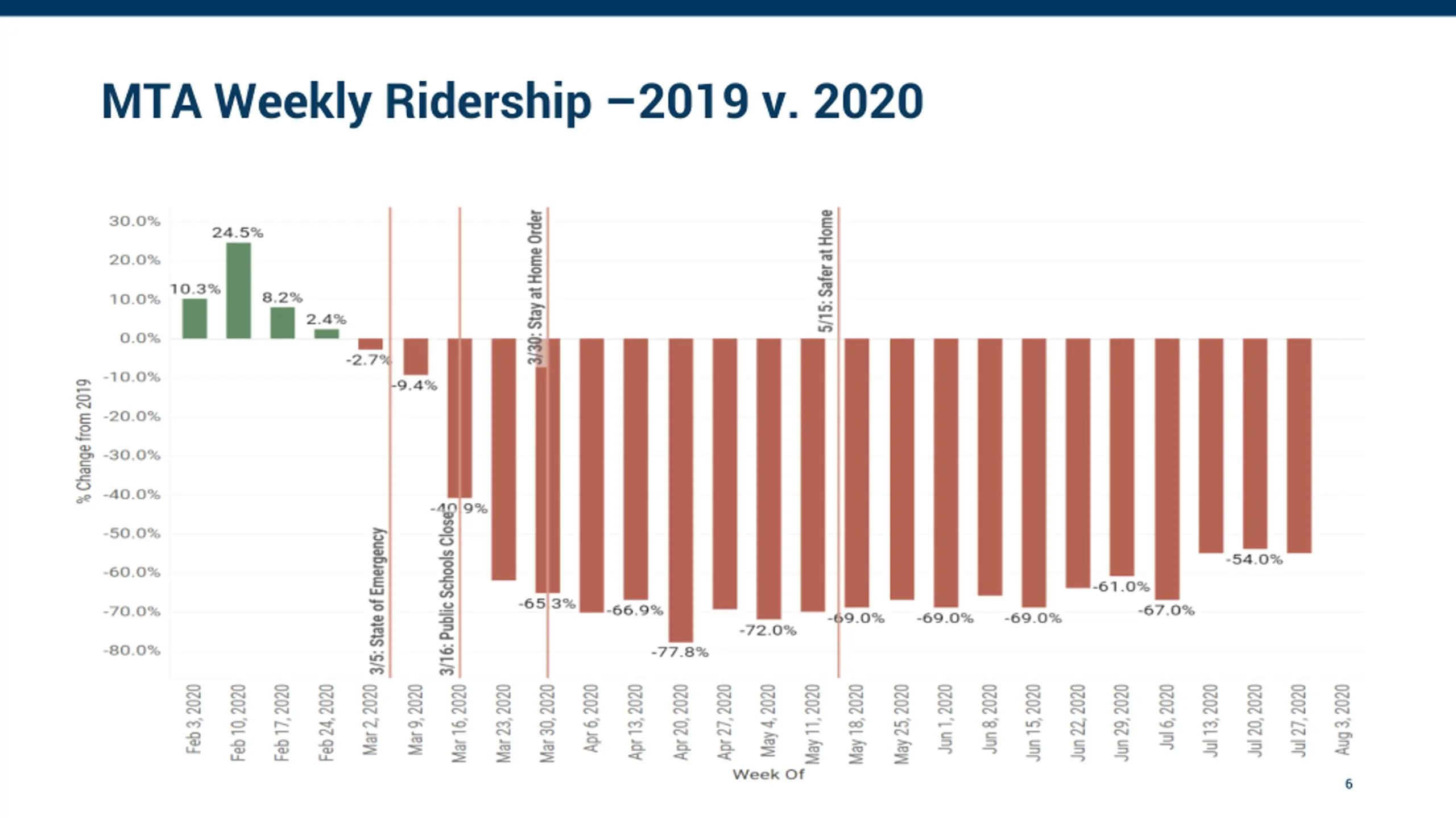 MDOT Weekly Traffic Counts 2019 v. 2020 20.0% 10.0% 0.0% -10.0% -20.0% -30.0% -40.0% -22.9% -53.9% -50.0% -60.0% 3