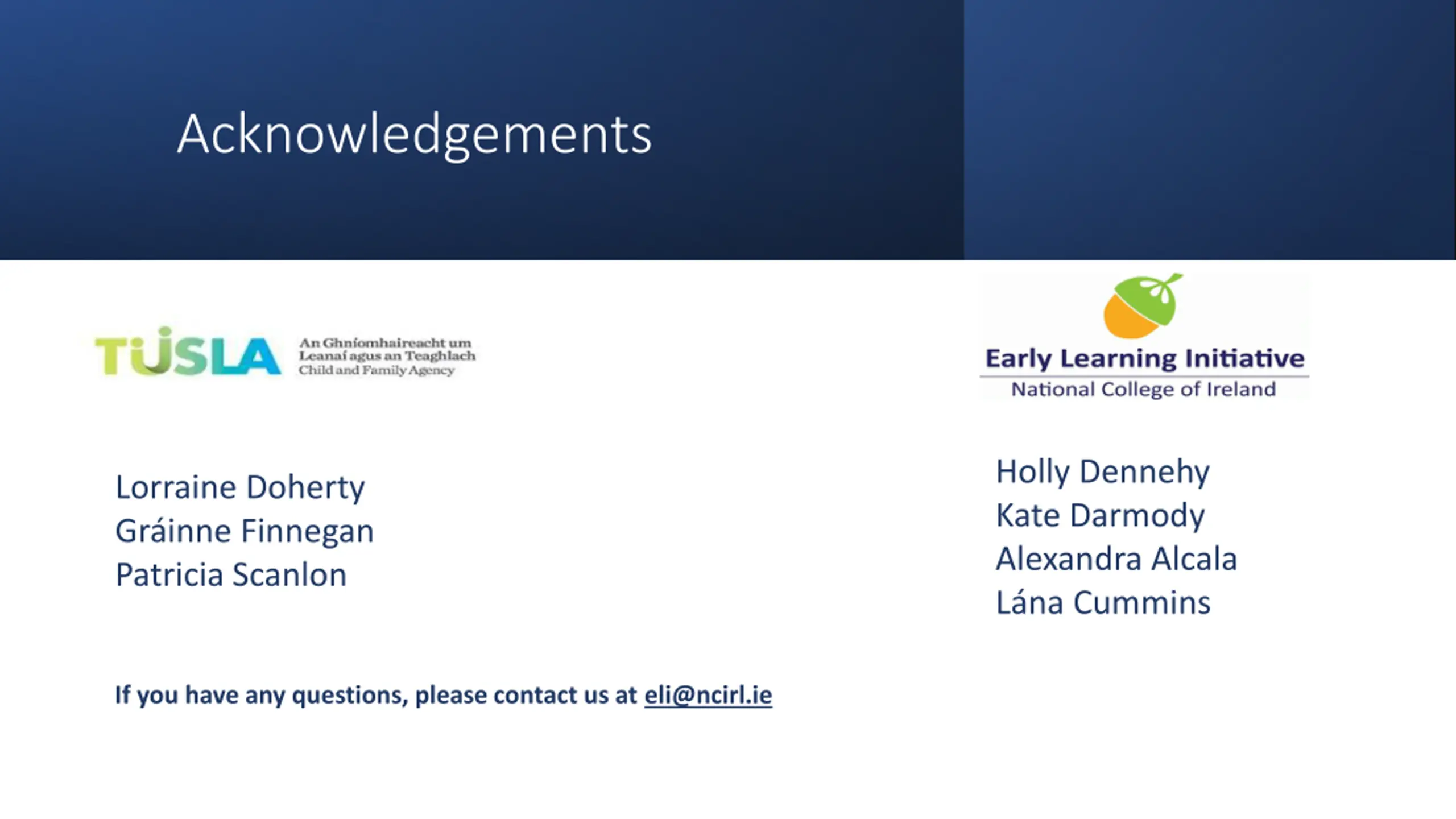 Acknowledgements Holly Dennehy Kate Darmody Alexandra Alcala L na Cummins Lorraine Doherty Gr inne Finnegan Patricia Scanlon If you have any questions, please contact us at eli@ncirl.ie