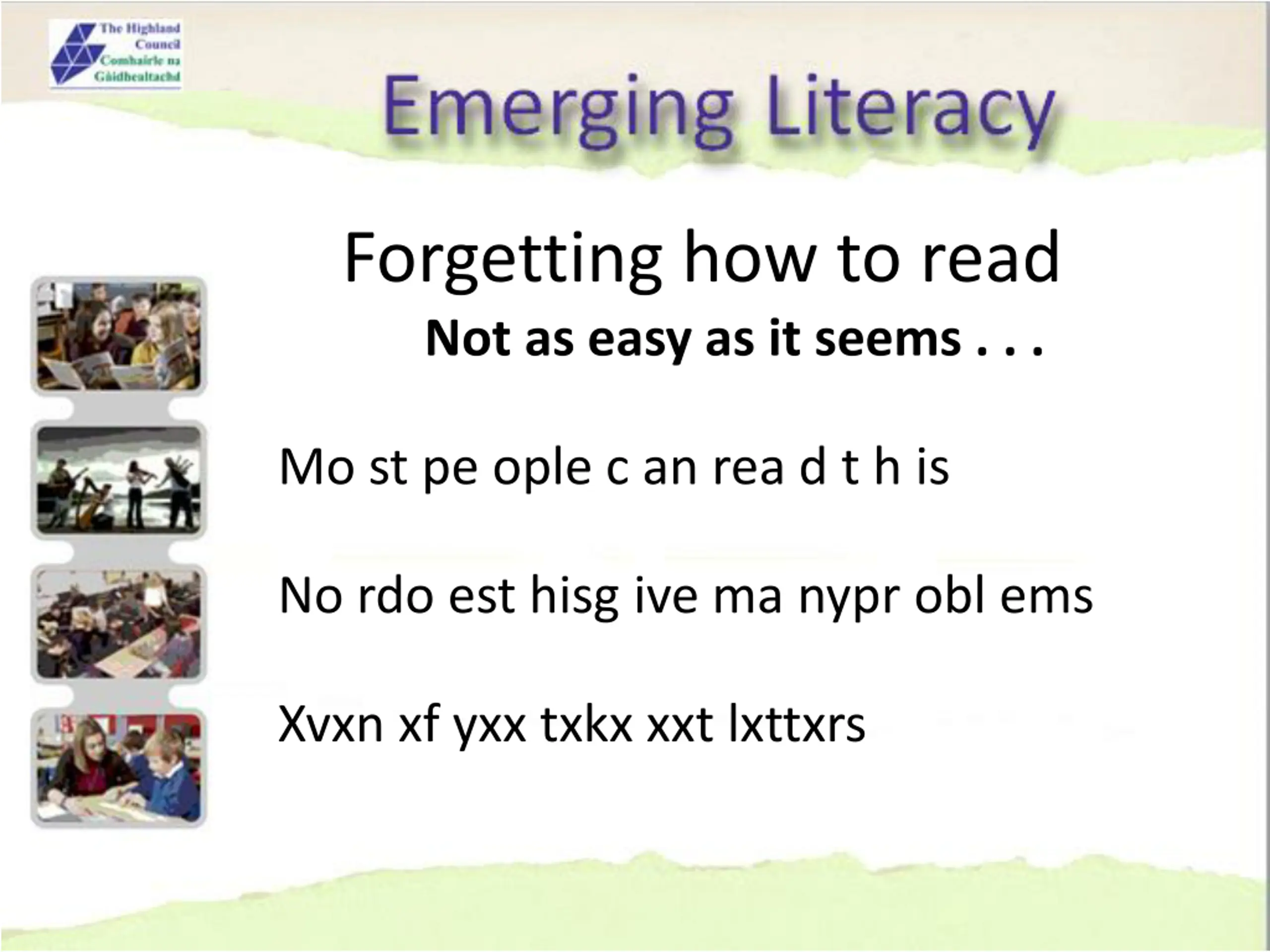 Forgetting how to read Not as easy as it seems . . . Mo st pe ople c an rea d t h is No rdo est hisg ive ma nypr obl ems Xvxn xf yxx txkx xxt lxttxrs