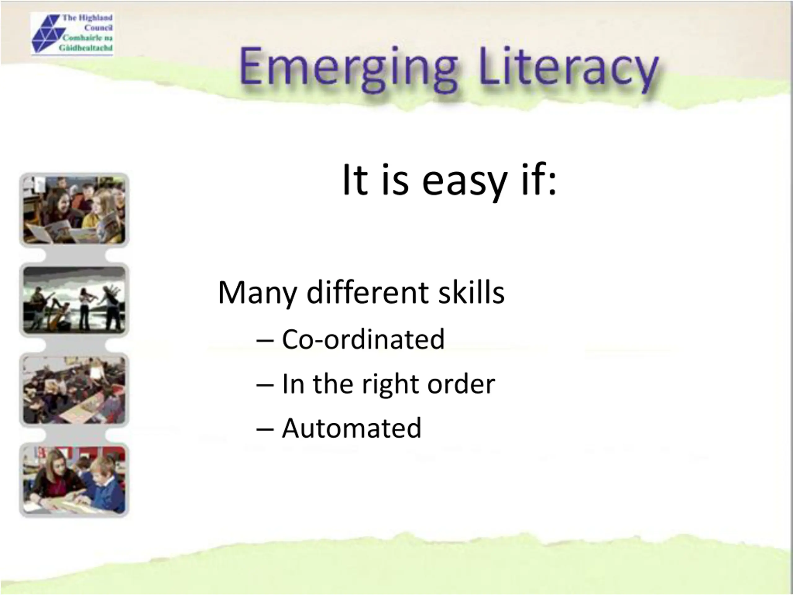 Automated skills Takes practice for skills to become automatic Effortless Does not use capacity Room to think about other things Suppose a child has to think effortfully about: Holding a pencil Spacing, or going from left to right Where one word ends or another begins
