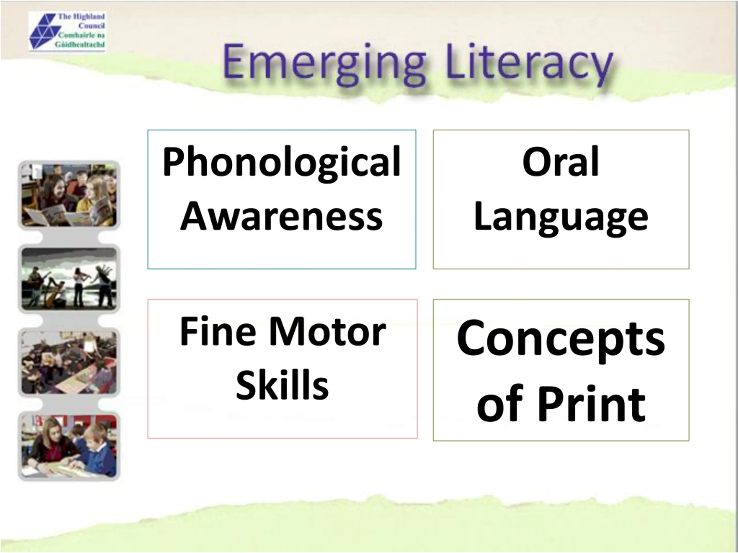 Phonological Awareness Oral Language Fine Motor Skills Concepts of Print