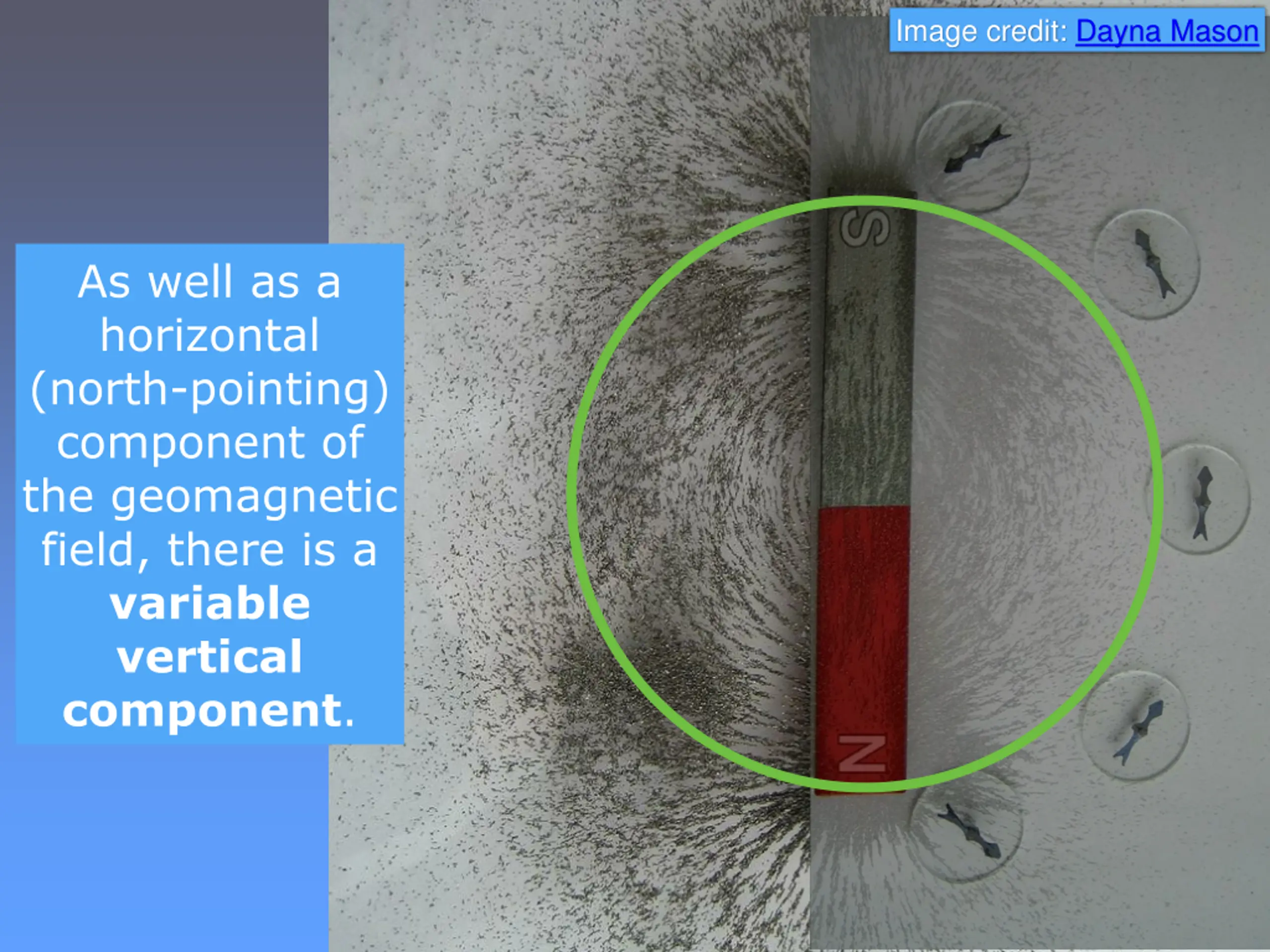 Image credit: Dayna Mason As well as a horizontal (north-pointing) component of the geomagnetic field, there is a variable vertical component.