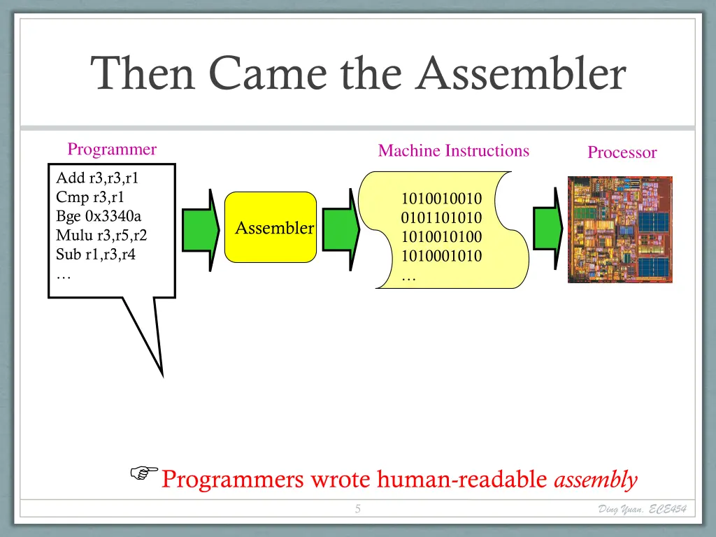 In the Beginning Programmer Processor 1010010010 0101101010 1010010100 1010001010 Programmers wrote machine instructions 4 Ding Yuan, ECE454