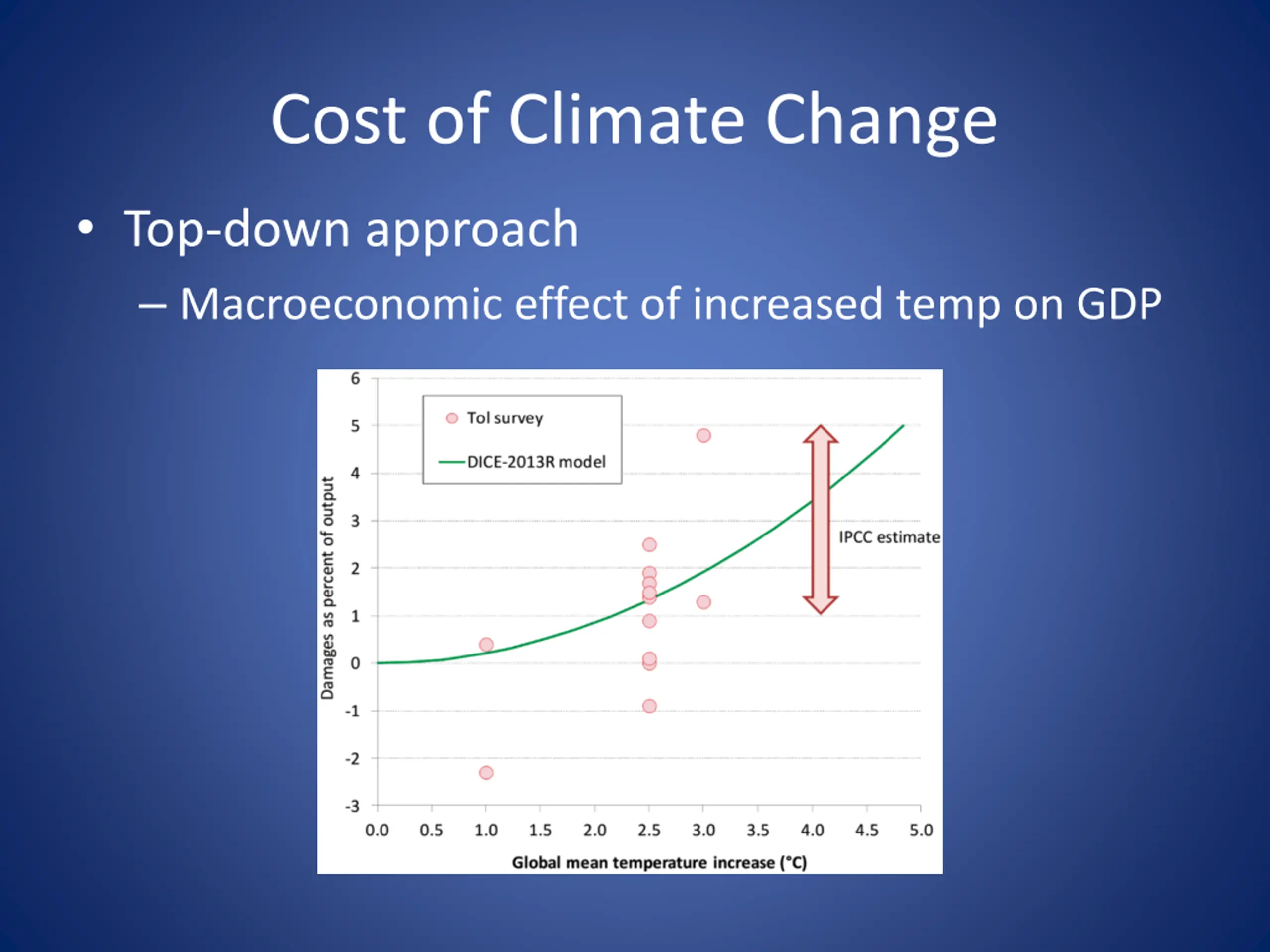 Cost of Climate Change Top-down approach Macroeconomic effect of increased temp on GDP