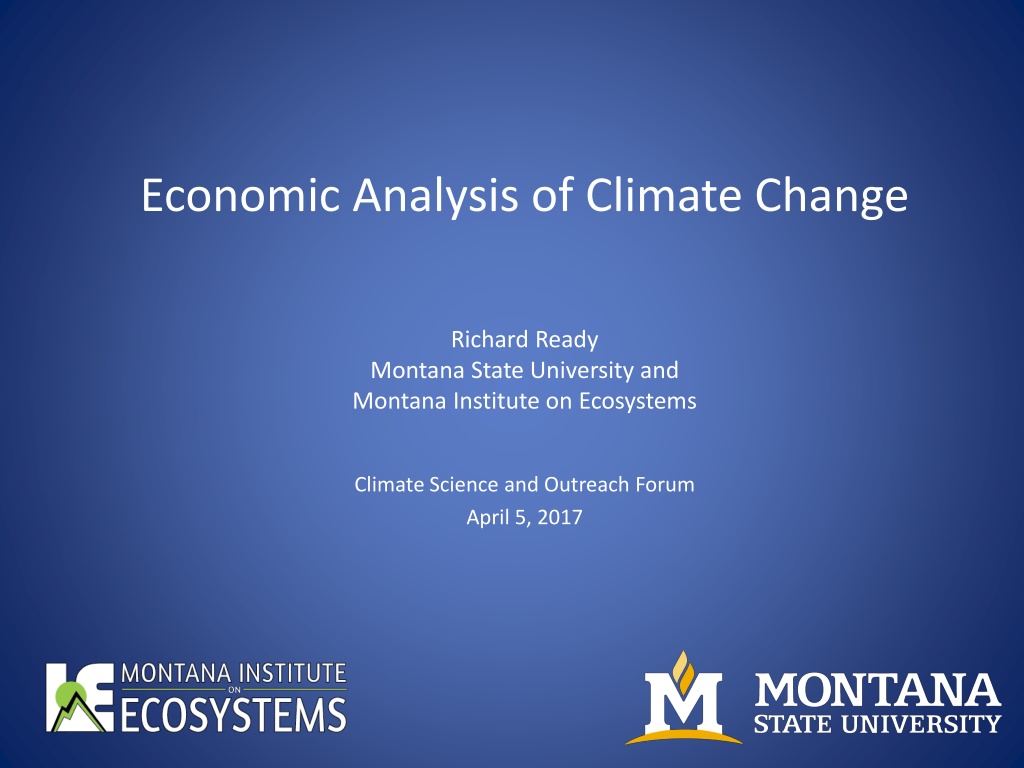 Economic Analysis of Climate Change Richard Ready Montana State University and Montana Institute on Ecosystems Climate Science and Outreach Forum April 5, 2017