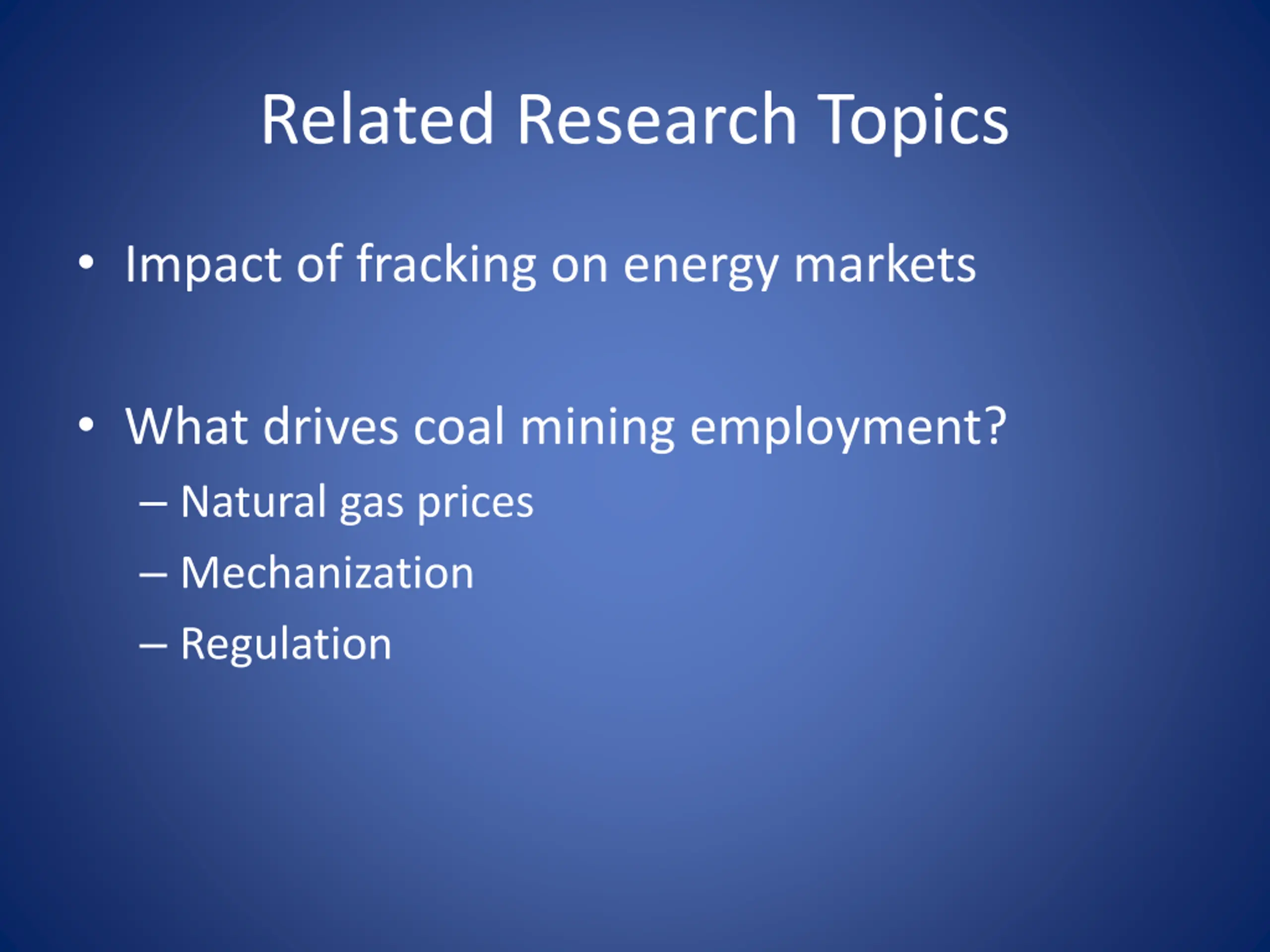 Related Research Topics Impact of fracking on energy markets What drives coal mining employment? Natural gas prices Mechanization Regulation