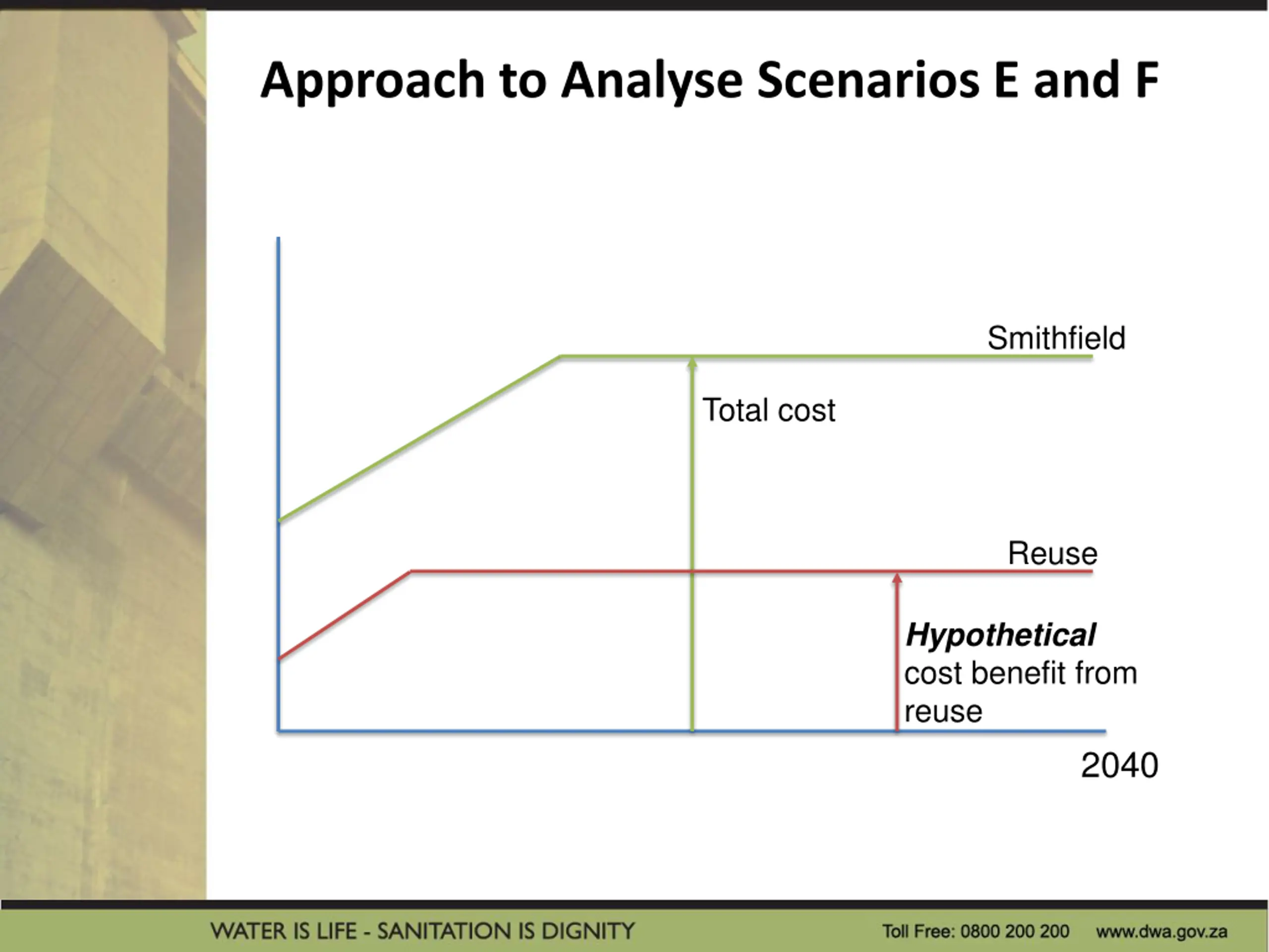Approach to Analyse Scenarios E and F Smithfield Total cost Reuse Hypothetical cost benefit from reuse 2040