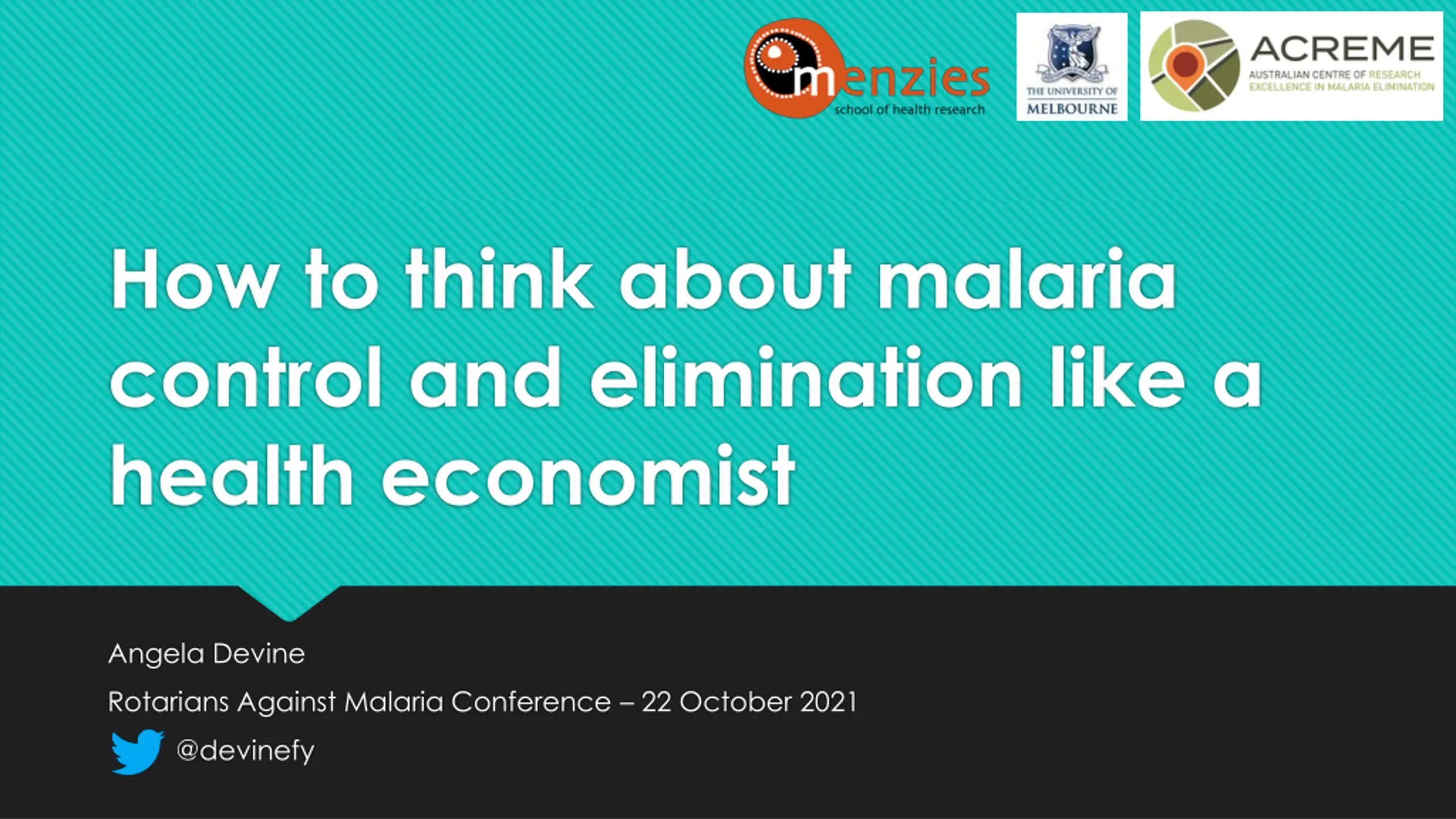 How to think about malaria control and elimination like a health economist Angela Devine Rotarians Against Malaria Conference 22 October 2021 @devinefy