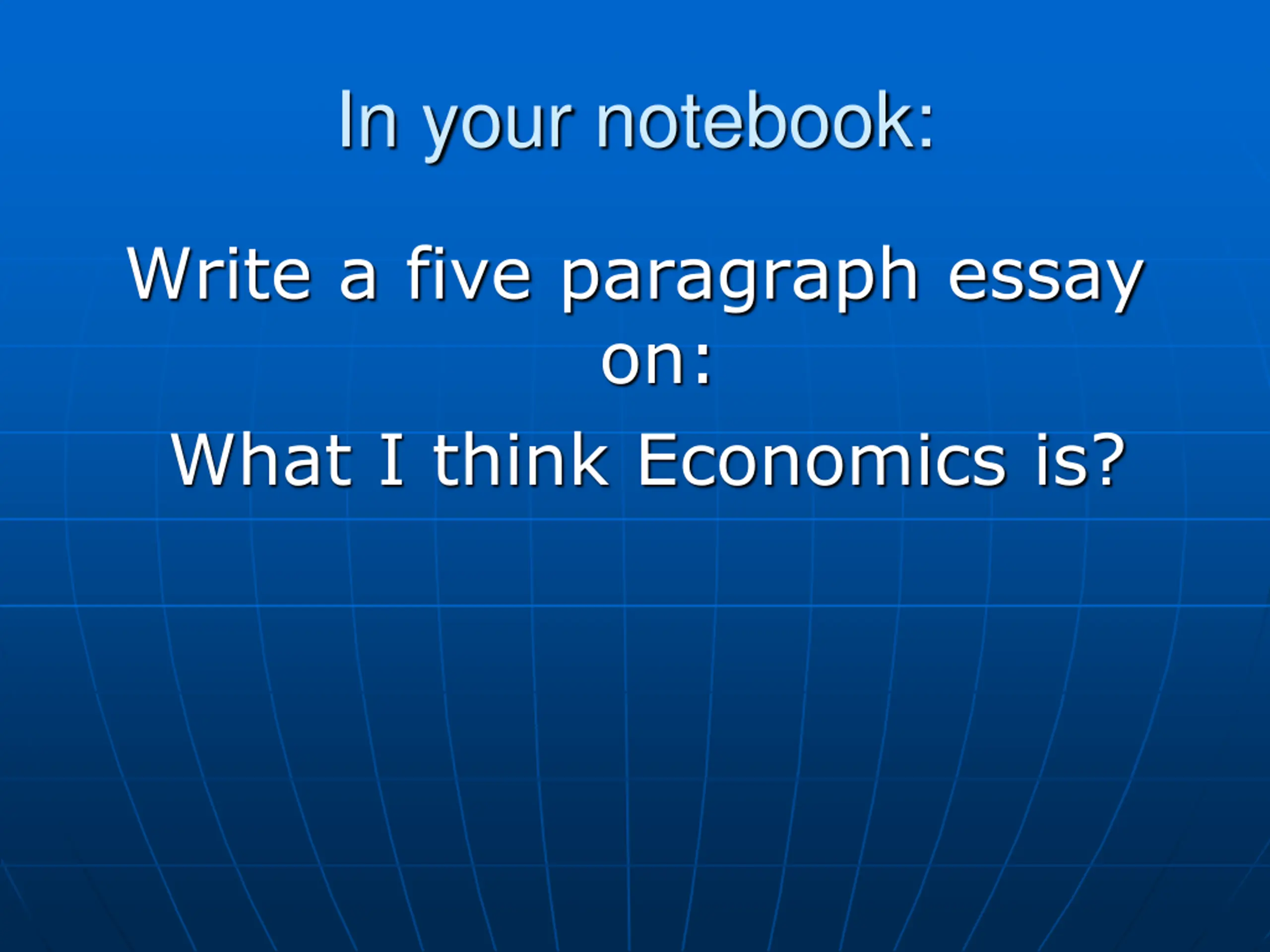 In your notebook: Write a five paragraph essay on: What I think Economics is?