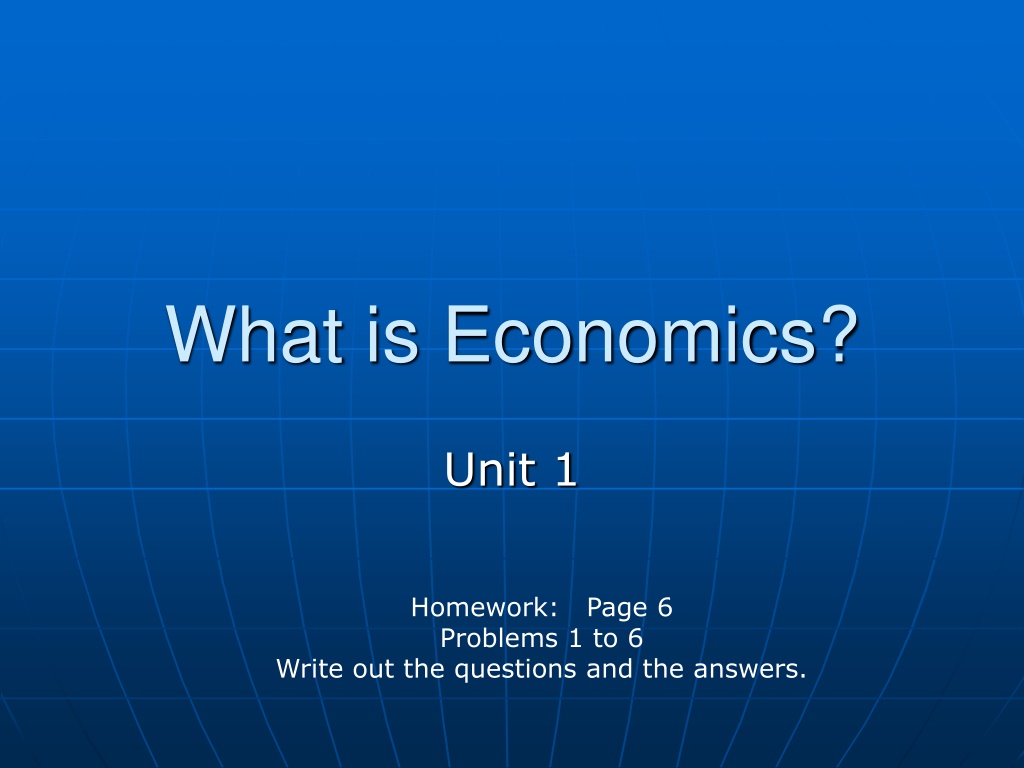 What is Economics? Unit 1 Homework: Page 6 Problems 1 to 6 Write out the questions and the answers.