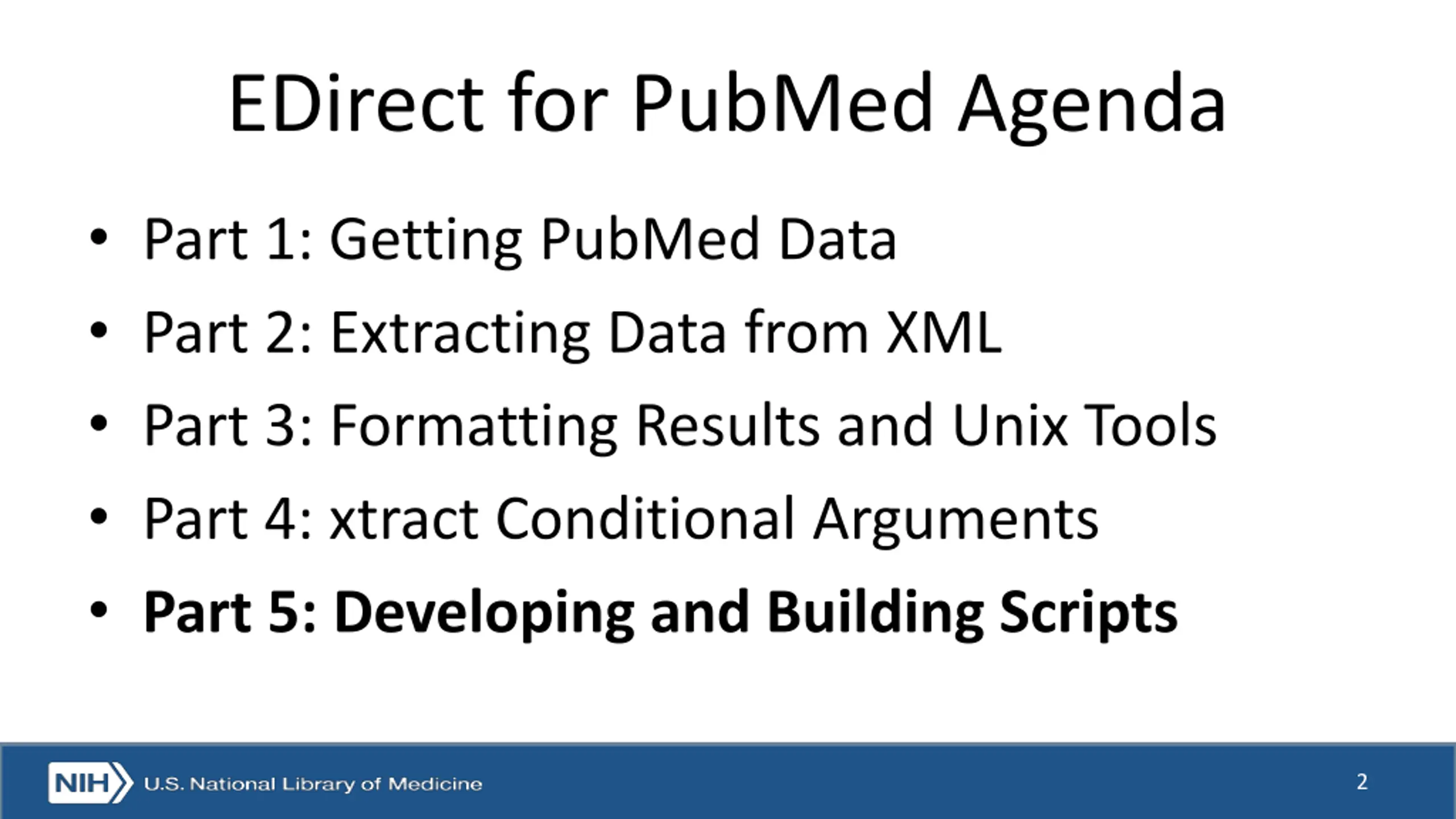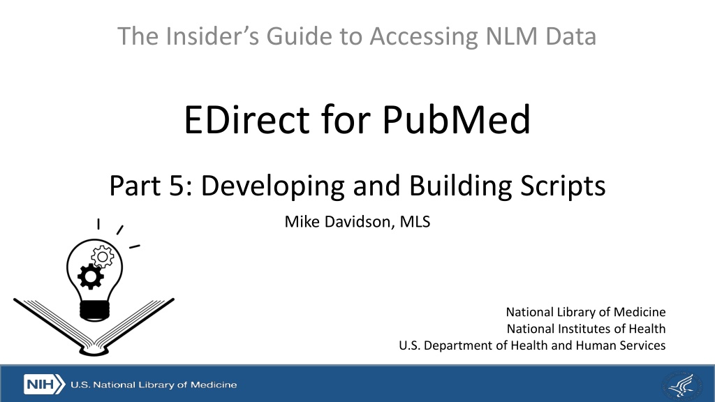 The Insiders Guide to Accessing NLM Data EDirect for PubMed Part 5: Developing and Building Scripts Mike Davidson, MLS National Library of Medicine National Institutes of Health U.S. Department of Health and Human Services