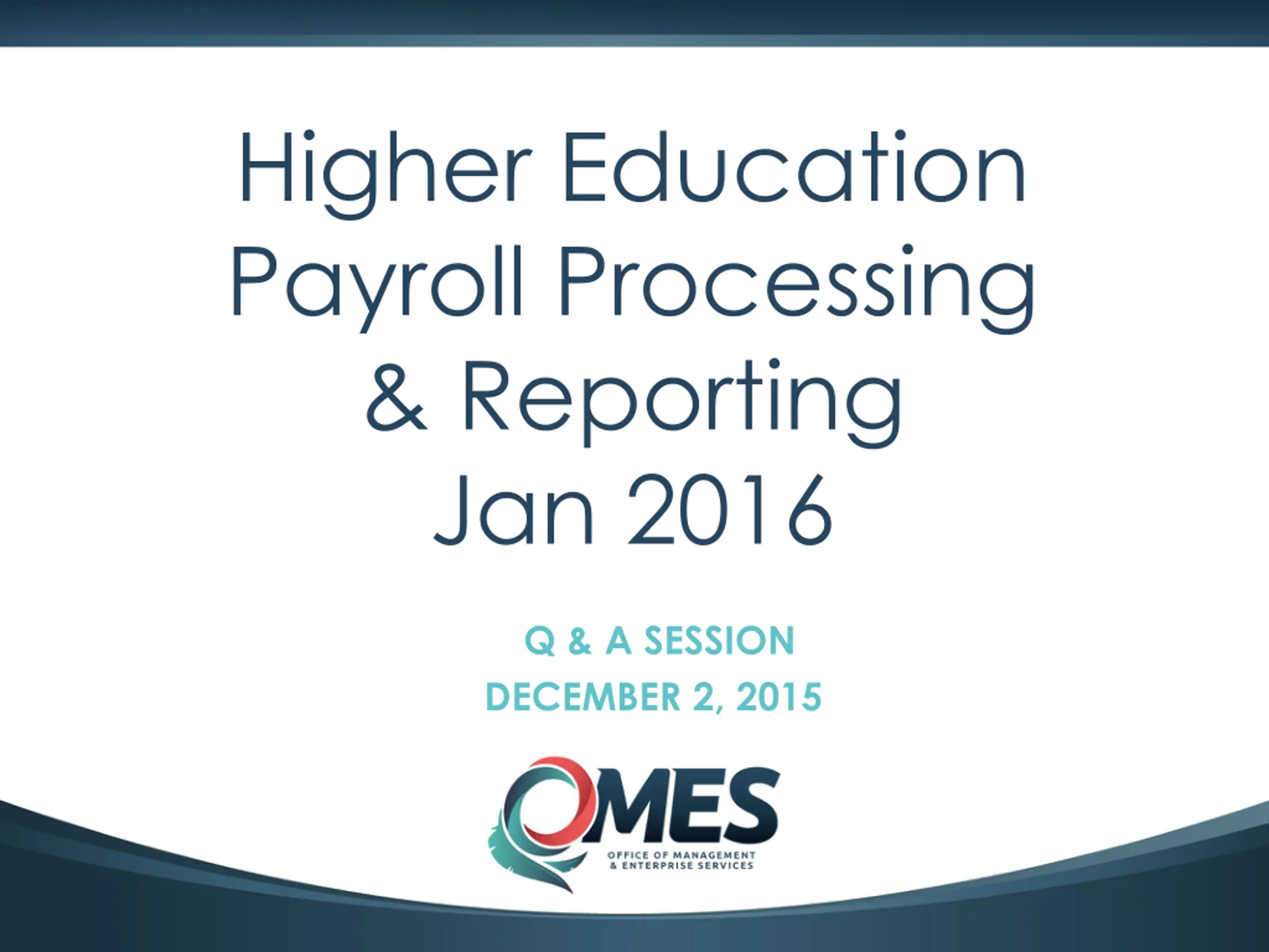 0 Higher Education Payroll Processing & Reporting Jan 2016 Q & A SESSION DECEMBER 2, 2015