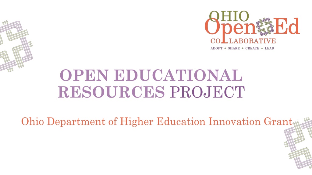 Explore the Ohio Department of Higher Education's innovative grant project aimed at supporting educational attainment goals, affordability, and innovation in higher education. Learn about the history of the innovation grant, project objectives, Lumina 2018 findings on educational attainment, key deliverables, and a range of OER courses offered. Join the efforts to create, adopt, and utilize open educational resources to enhance access and affordability for students across Ohio.