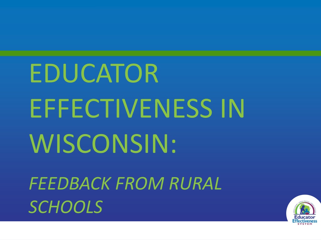 This presentation explores feedback from rural schools in Wisconsin regarding educator effectiveness, focusing on reducing burdens, increasing resources, and summarizing educator practices and student outcomes using data and graphs.