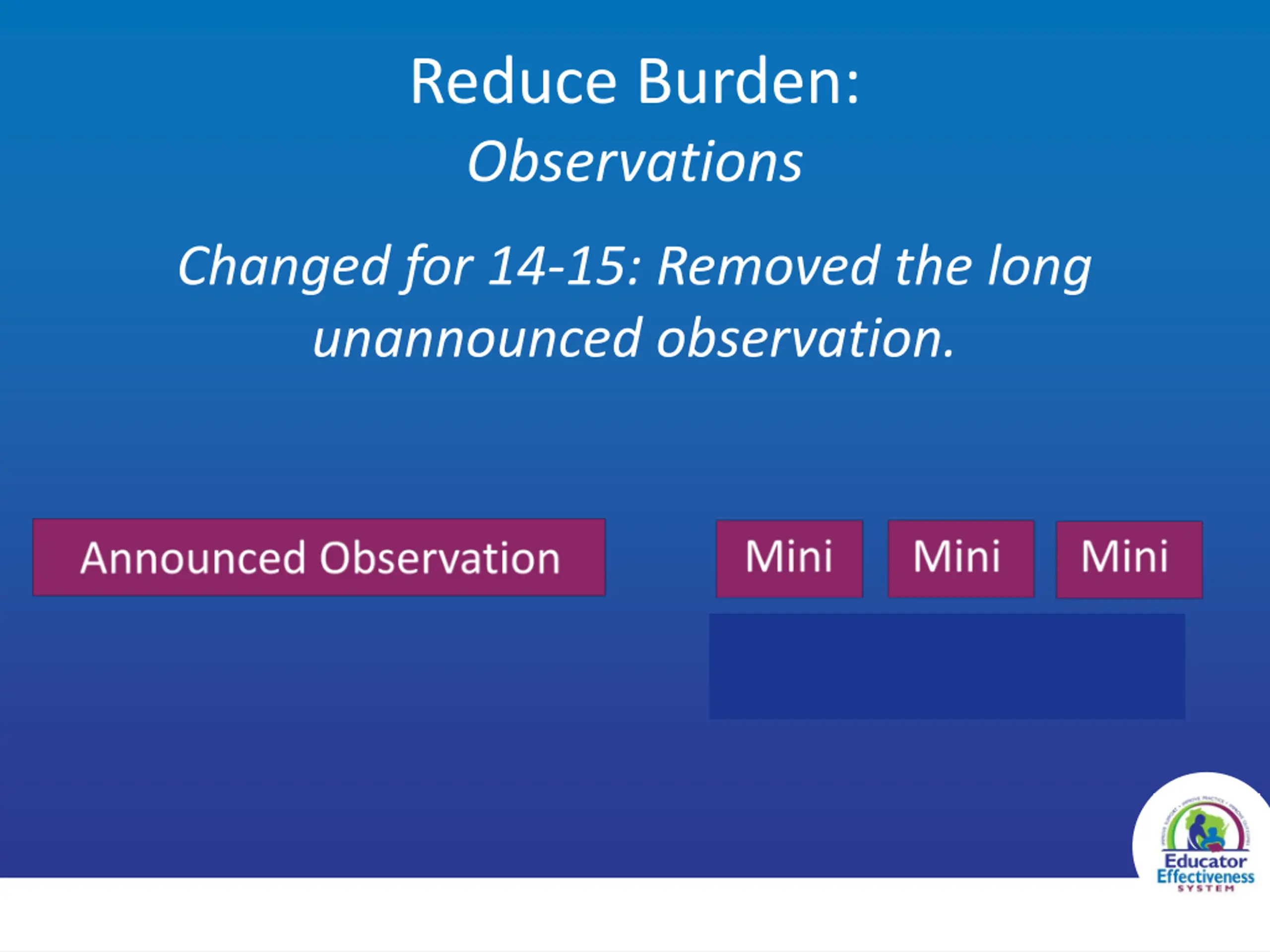 Reduce Burden: Observations Changed for 14-15: Removed the long unannounced observation.