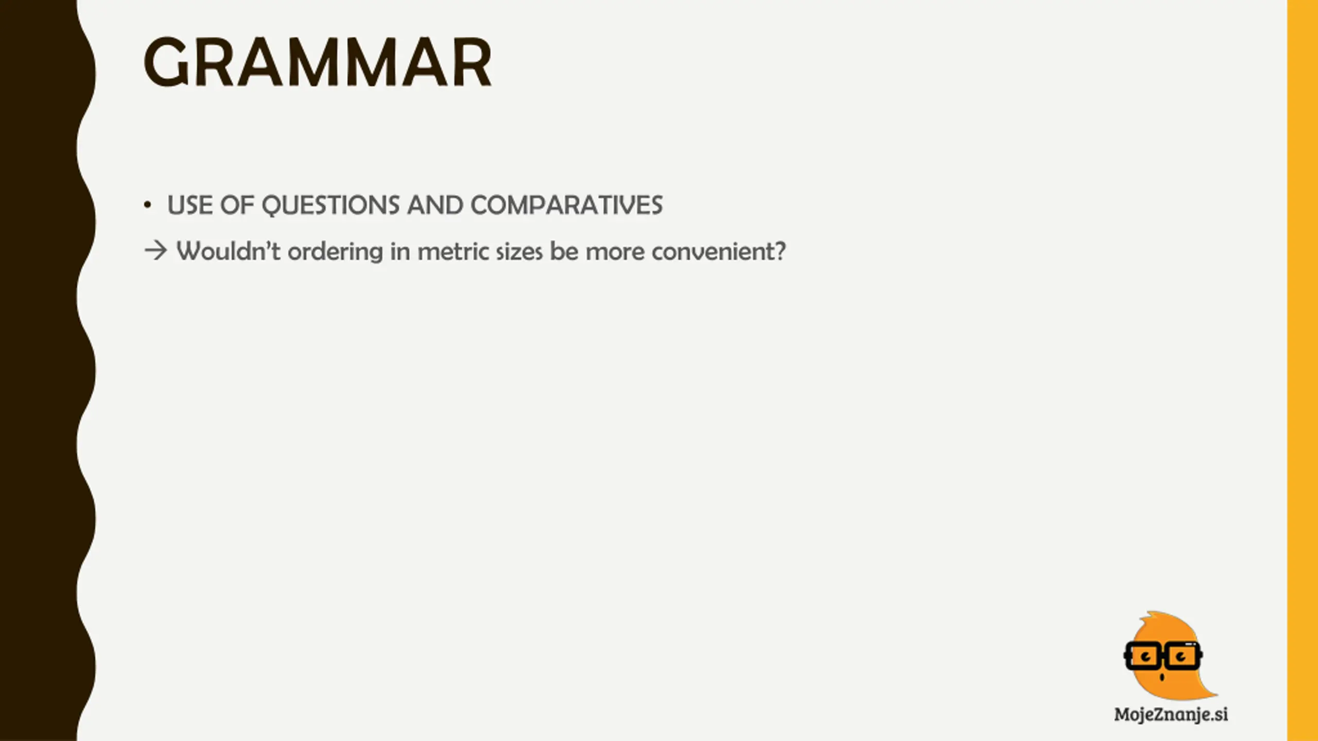 GRAMMAR USE OF QUESTIONS AND COMPARATIVES Wouldn t ordering in metric sizes be more convenient?