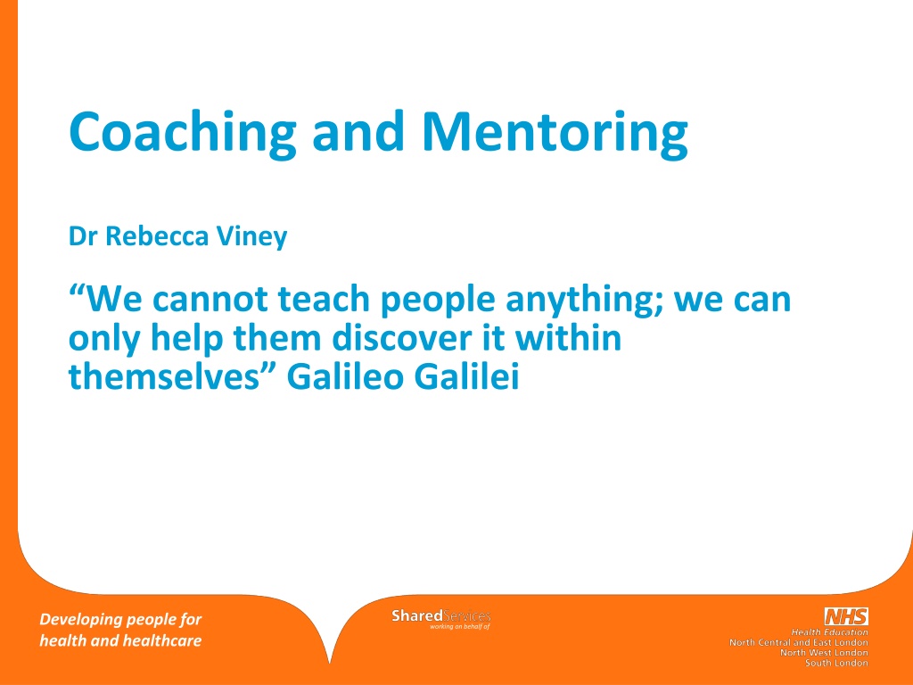 Coaching and Mentoring Dr Rebecca Viney We cannot teach people anything; we can only help them discover it within themselves Galileo Galilei We cannot teach people anything; we can only help Developing people for health and healthcare working on behalf of