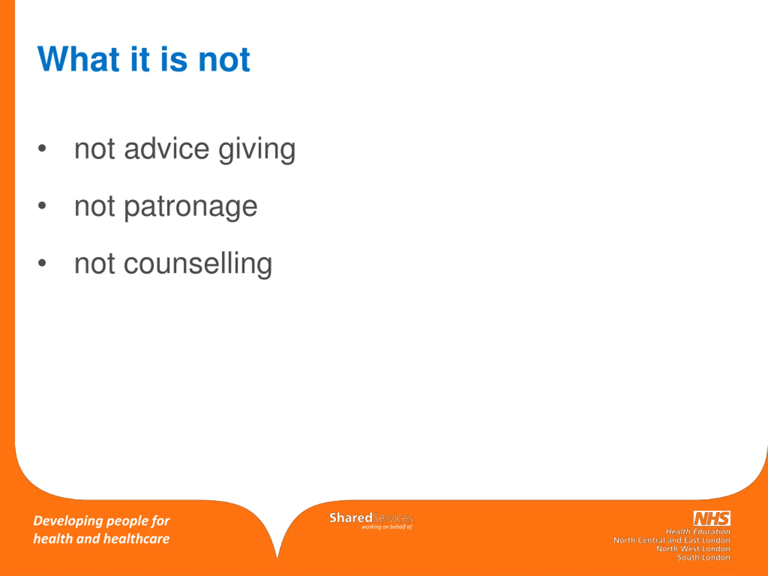 What it is not not advice giving not patronage not counselling Developing people for health and healthcare working on behalf of