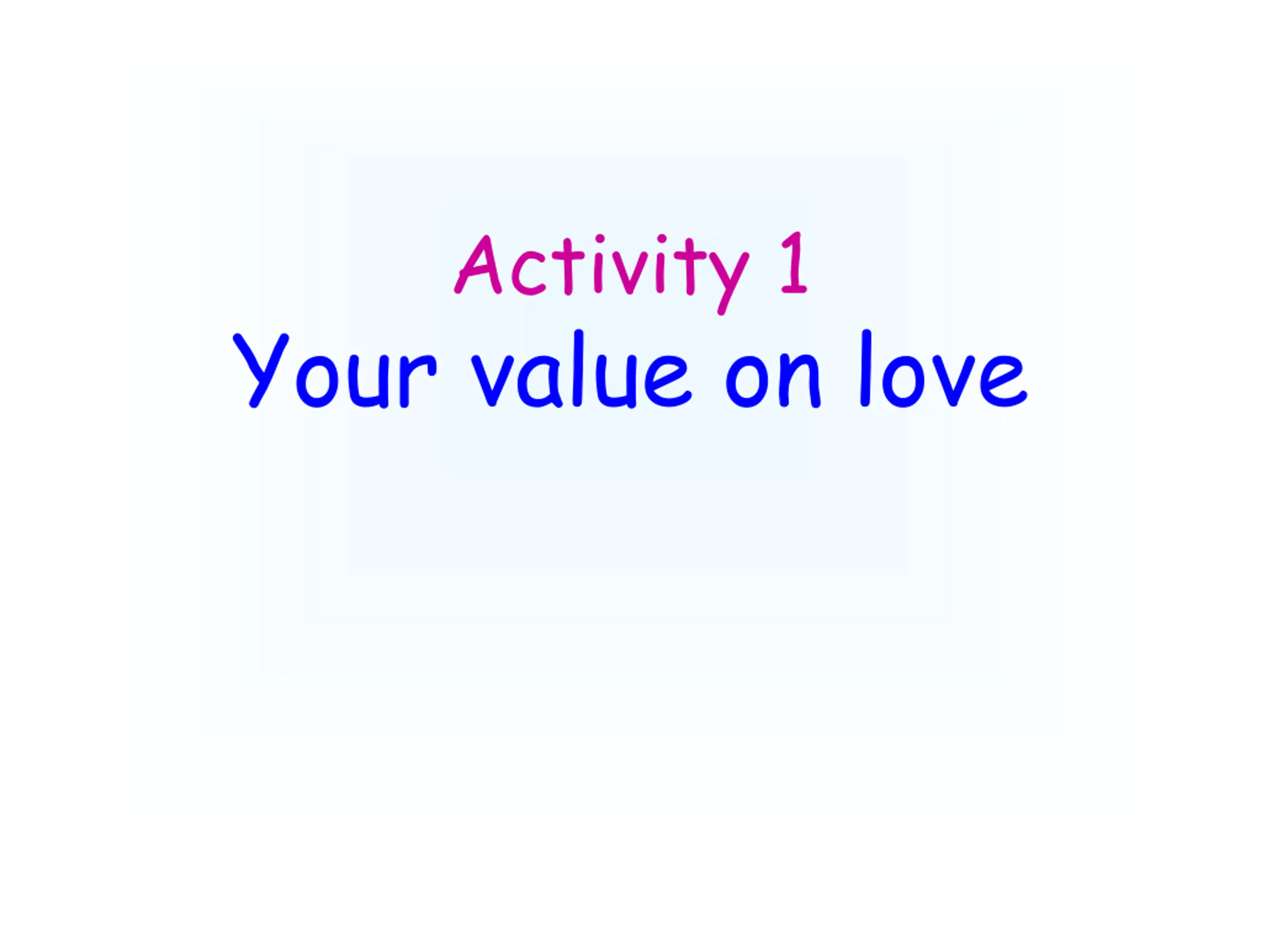 Activity 1 Your value on love