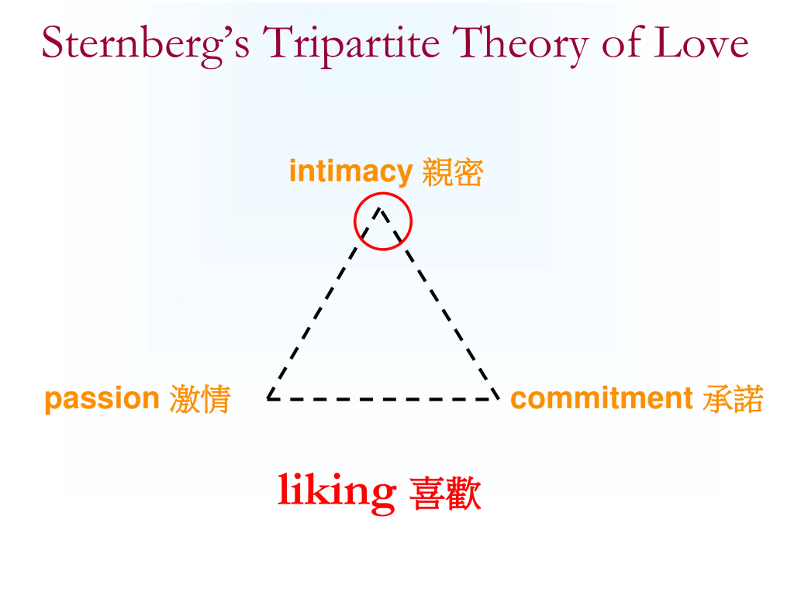 Sternbergs Tripartite Theory of Love intimacy passion commitment liking