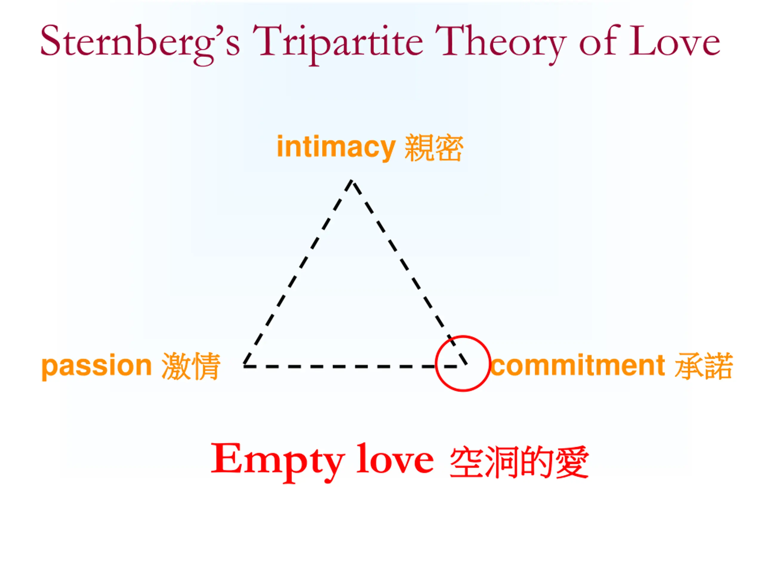 Sternbergs Tripartite Theory of Love intimacy passion commitment Empty love