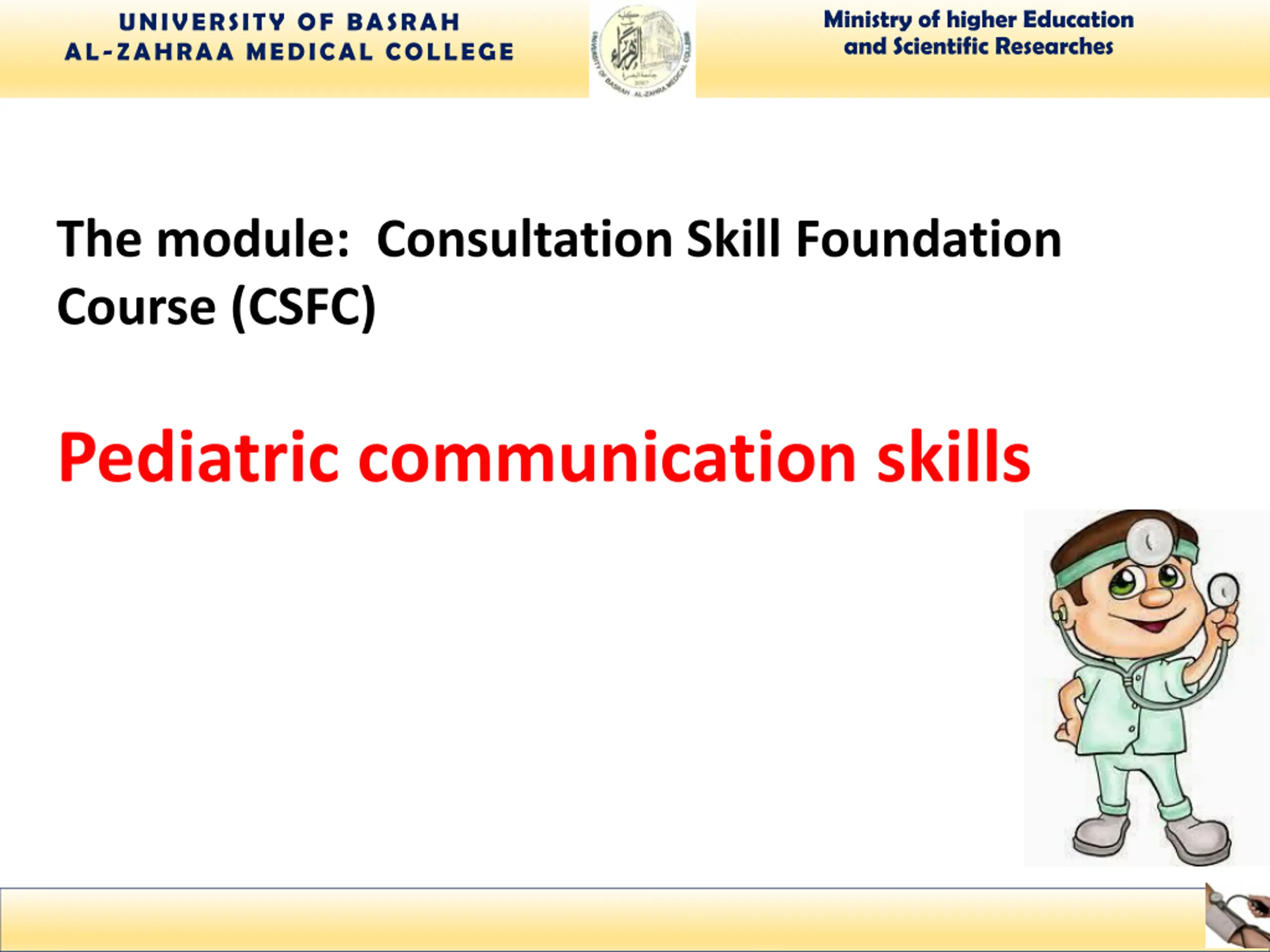 Ministry of higher Education and Scientific Researches UNIVERSITY OF BASRAH AL-ZAHRAA MEDICAL COLLEGE The module: Consultation Skill Foundation Course (CSFC) Pediatric communication skills