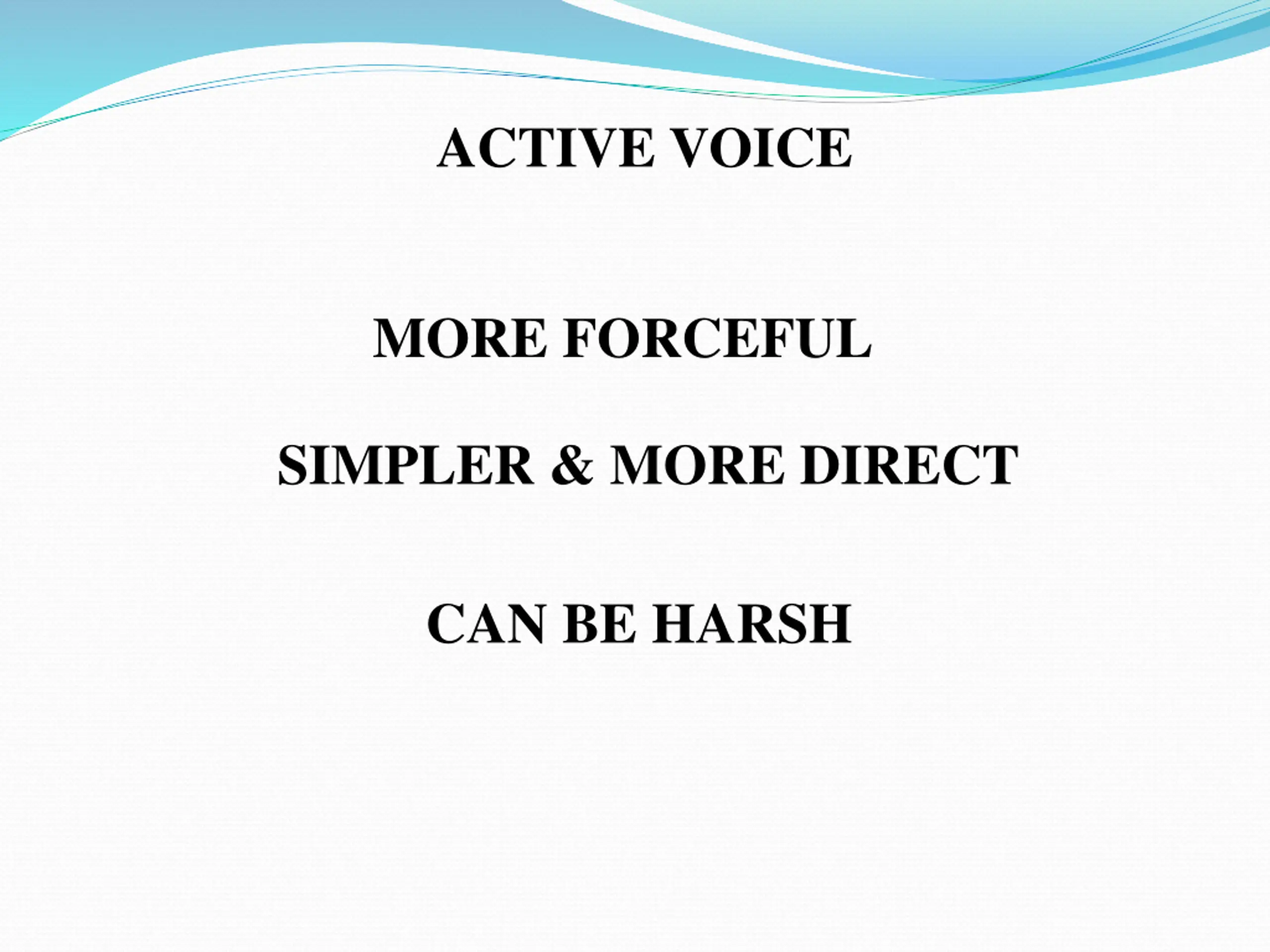 ACTIVE VOICE MORE FORCEFUL SIMPLER & MORE DIRECT CAN BE HARSH