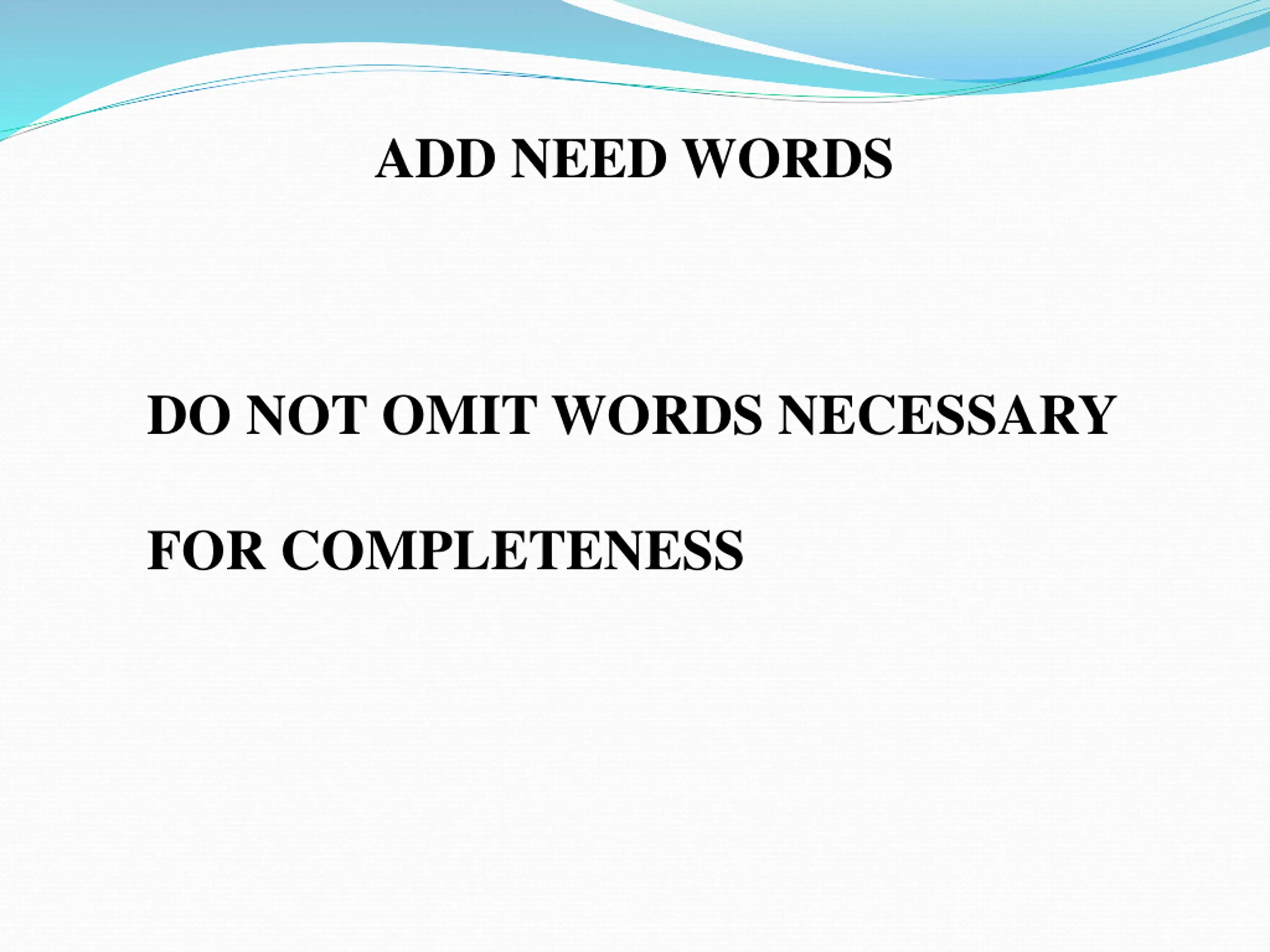 ADD NEED WORDS DO NOT OMIT WORDS NECESSARY FOR COMPLETENESS