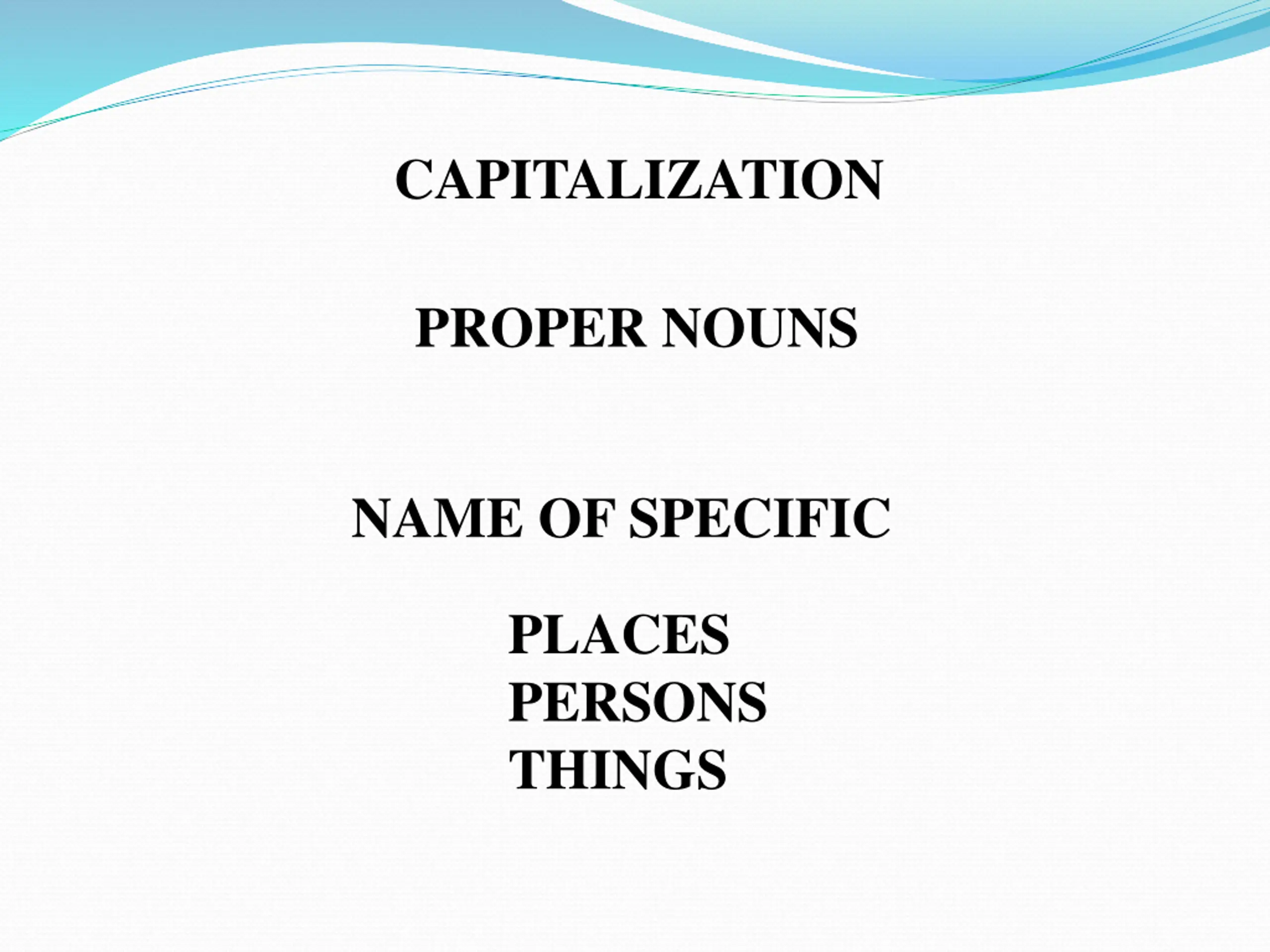 CAPITALIZATION PROPER NOUNS NAME OF SPECIFIC PLACES PERSONS THINGS